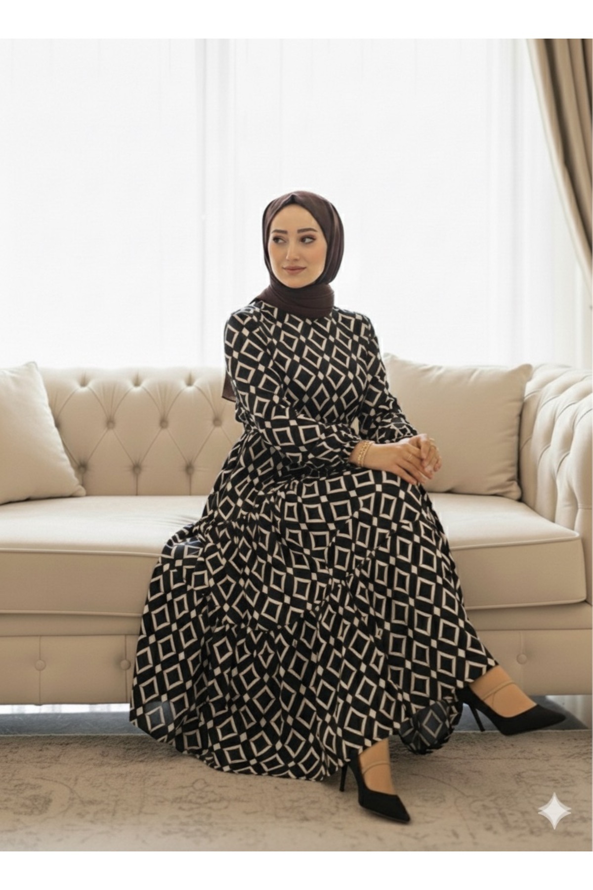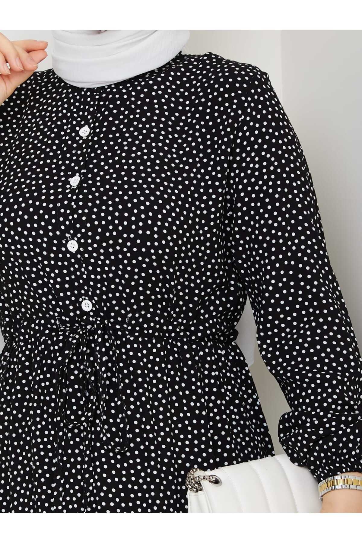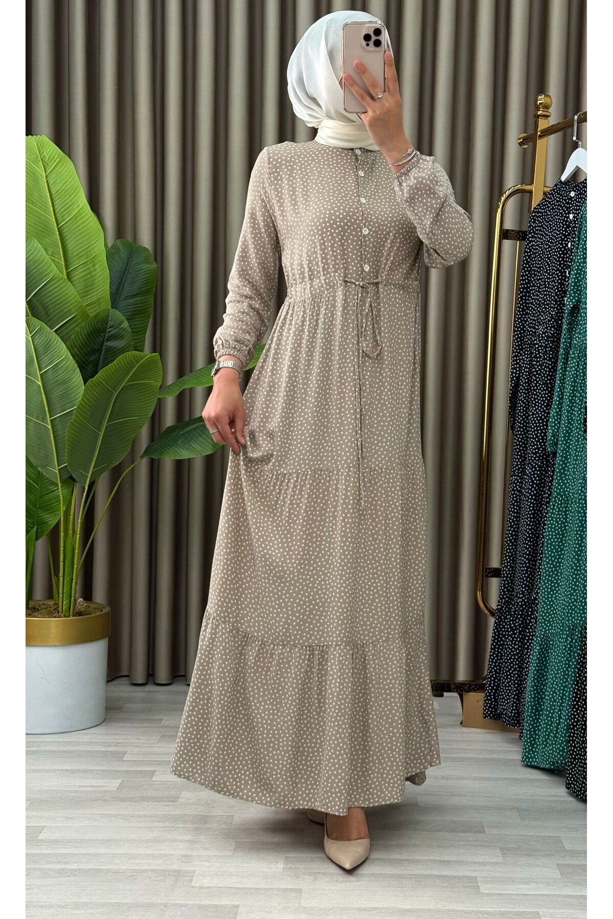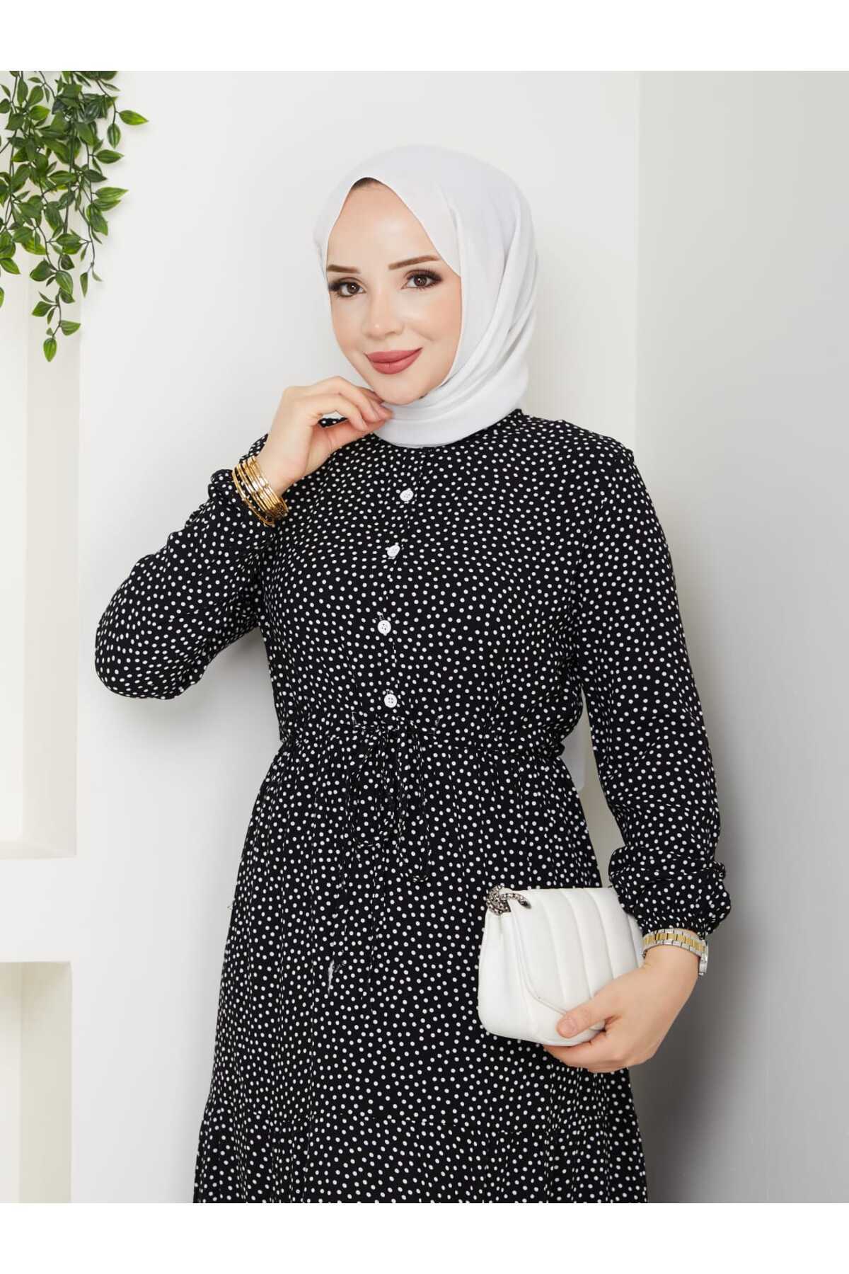 Kadın Tesettür Viscon Kumaş Puantiyeli 135 cm Belden Tünelli Bağlamalı Beş Düğmeli Boydan Elbise Kadın Tesettür Viscon Kumaş Puantiyeli 135 cm Belden Tünelli Bağlamalı Beş Düğmeli Boydan Elbise DFNELBİSE-002 XL