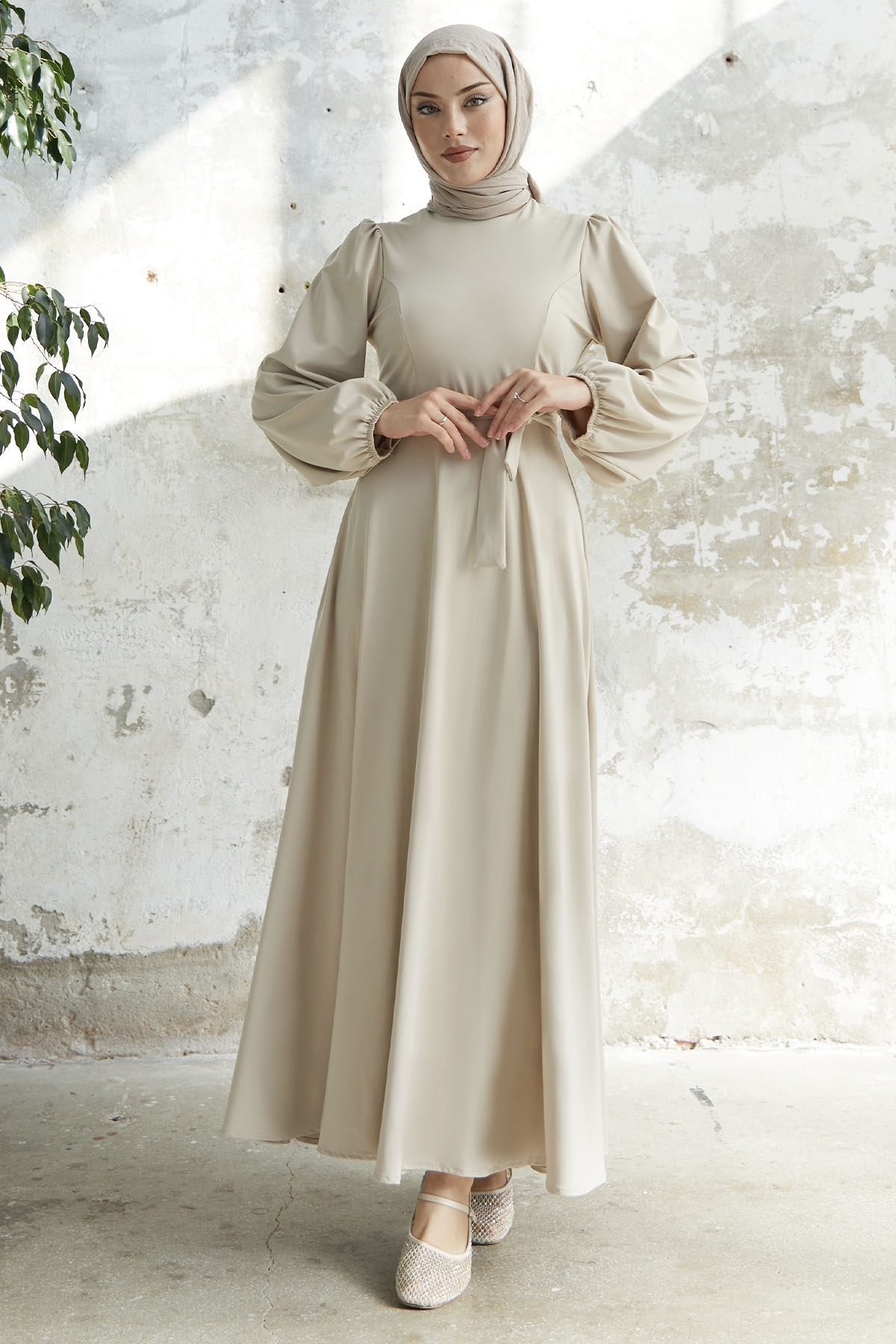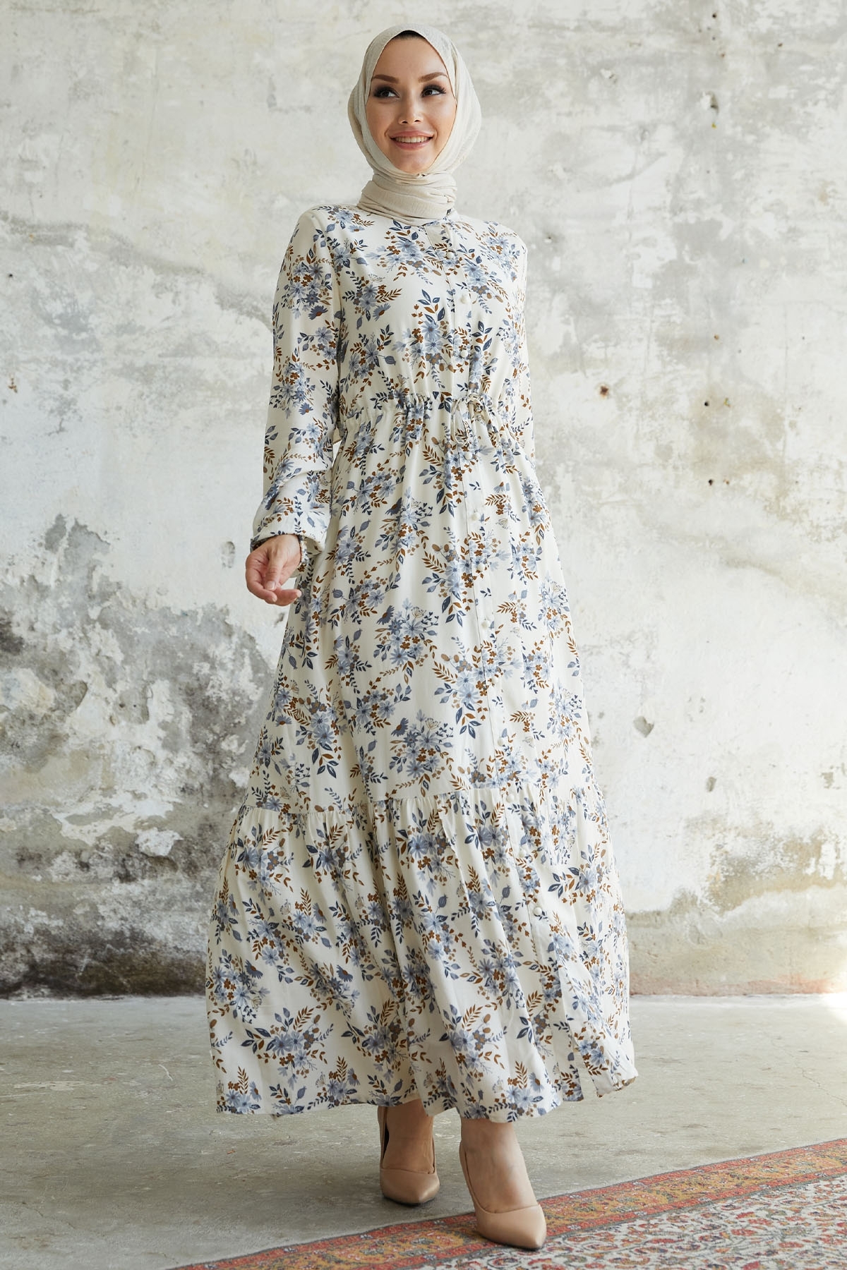 Kadın Tesettür Viscon Kumaş Puantiyeli 135 cm Belden Tünelli Bağlamalı Beş Düğmeli Boydan Elbise Kadın Tesettür Viscon Kumaş Puantiyeli 135 cm Belden Tünelli Bağlamalı Beş Düğmeli Boydan Elbise DFNELBİSE-002 XL