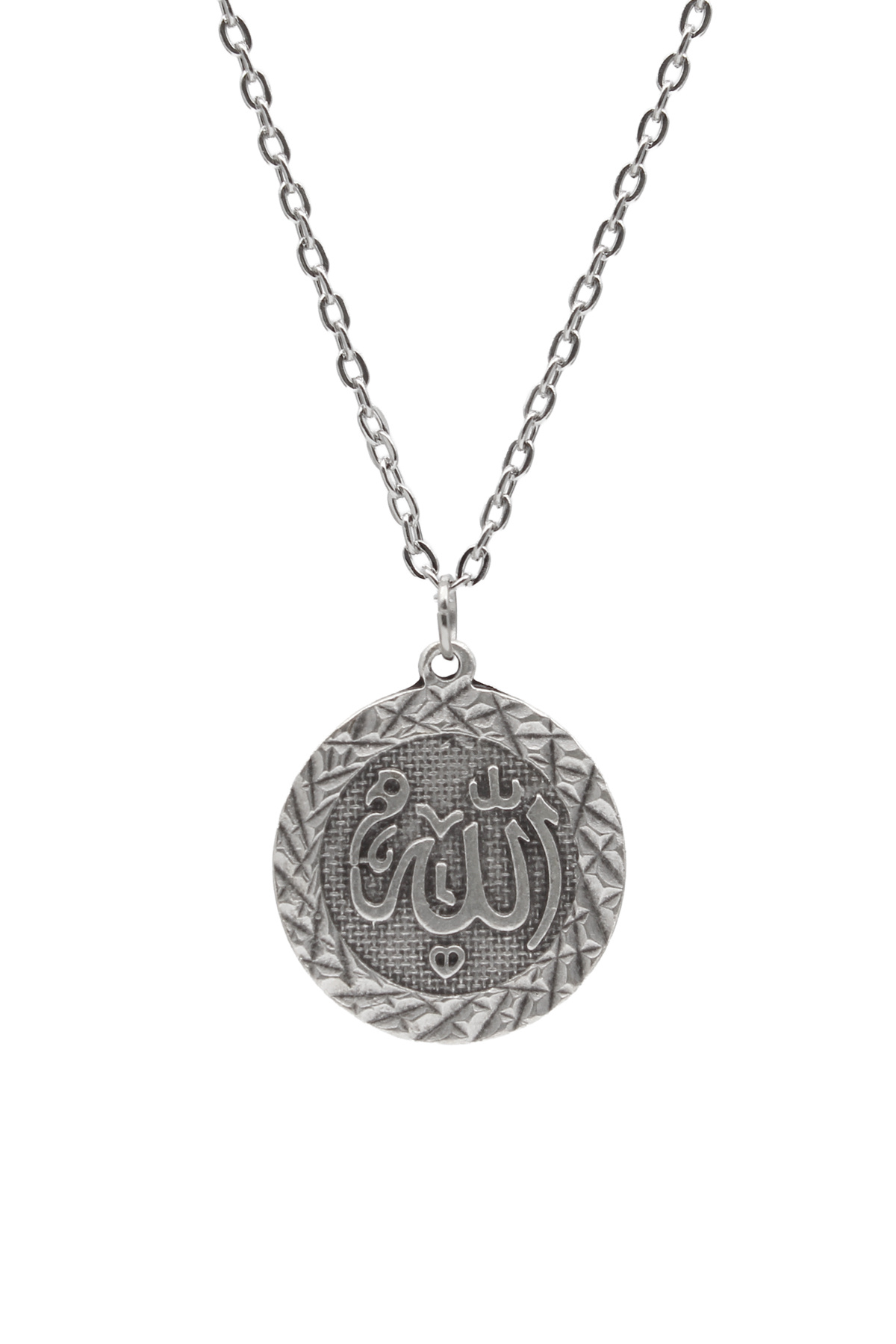 Kabartmalı Allah Yazılı Kolye Allah Lafzı Kolye - Antik Gümüş Kaplama Klasik Zincirli Kabartmalı Allah Yazılı Kolye Allah Lafzı Kolye - Antik Gümüş Kaplama Klasik Zincirli BKL00154-1 65 cm