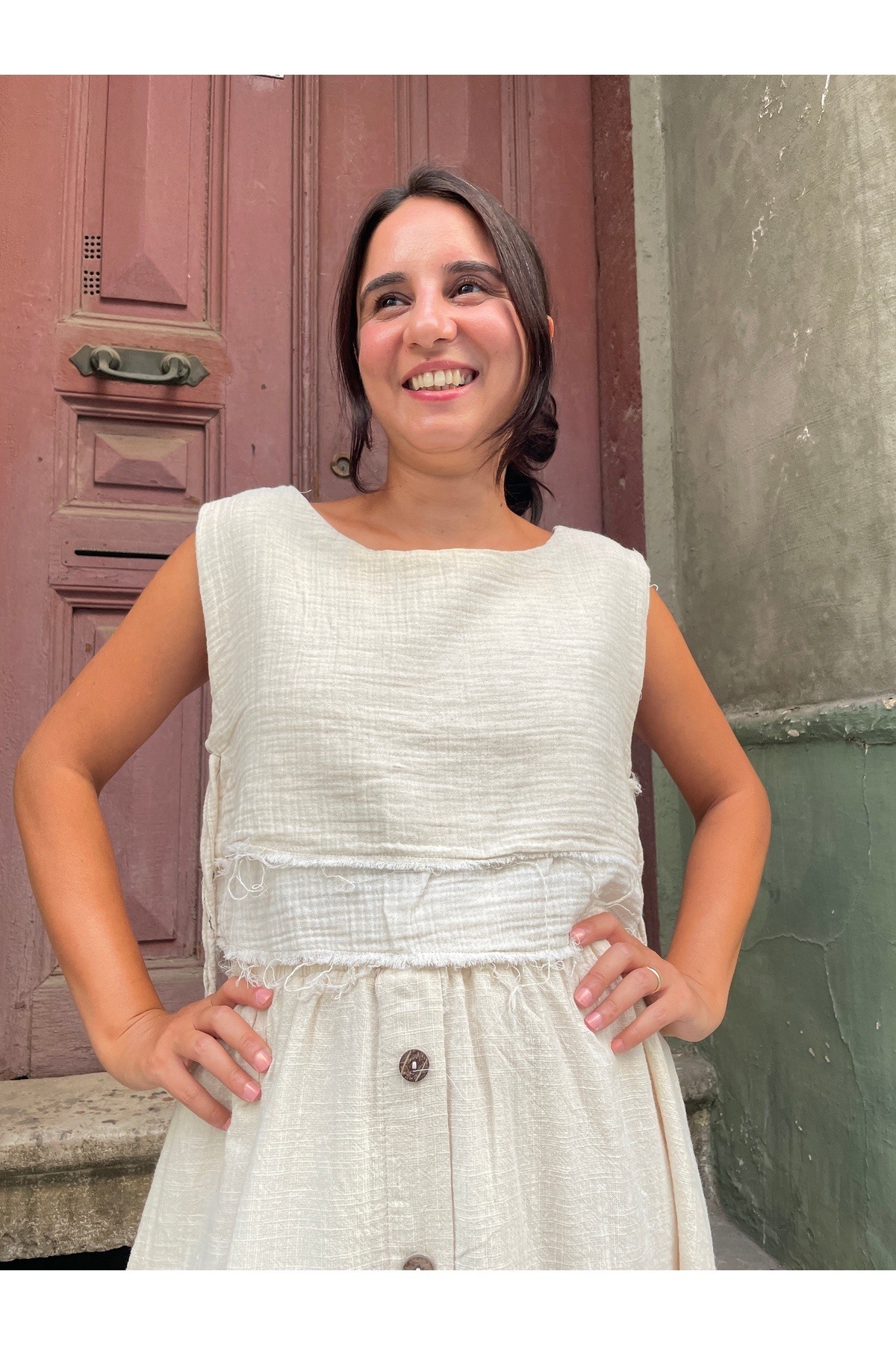 2 Katlı %100 Pamuk Müslin Omuz Detaylı Bluz Crop 2 Katlı %100 Pamuk Müslin Omuz Detaylı Bluz Crop XL