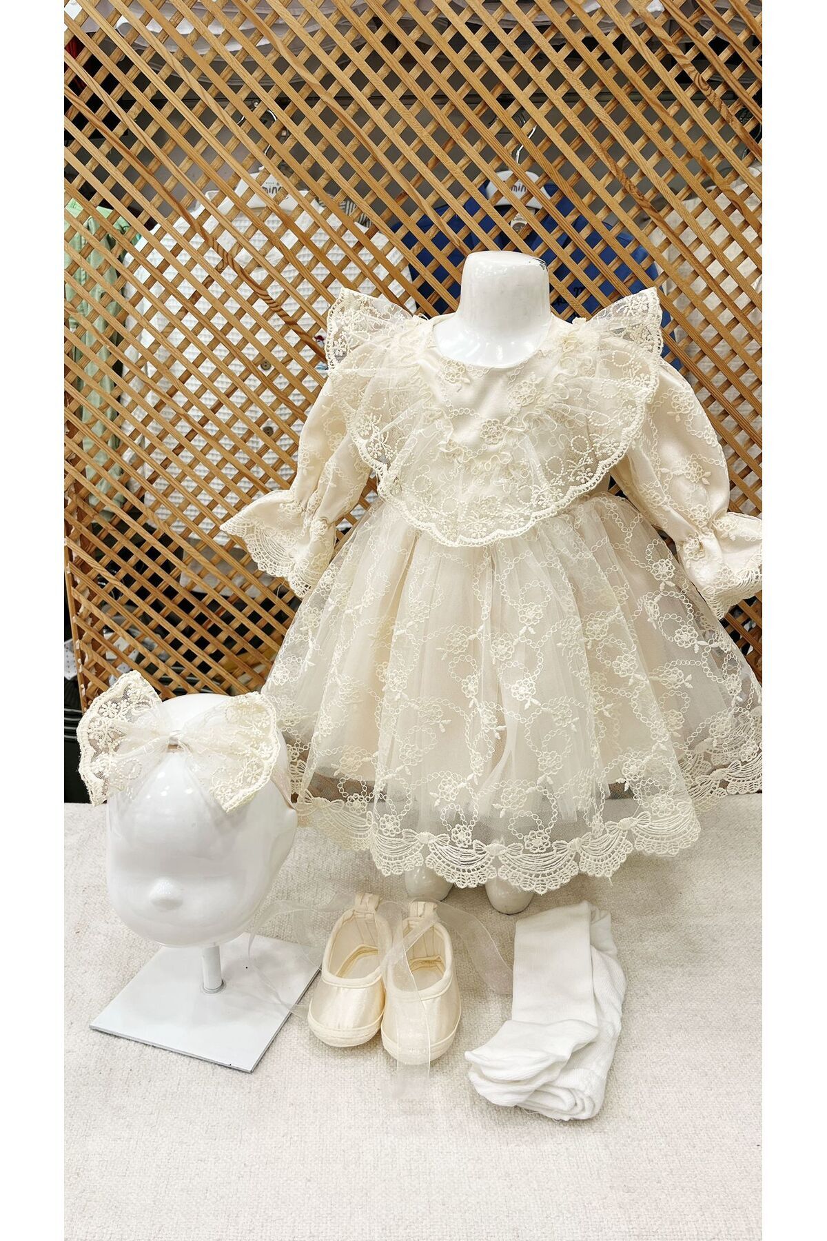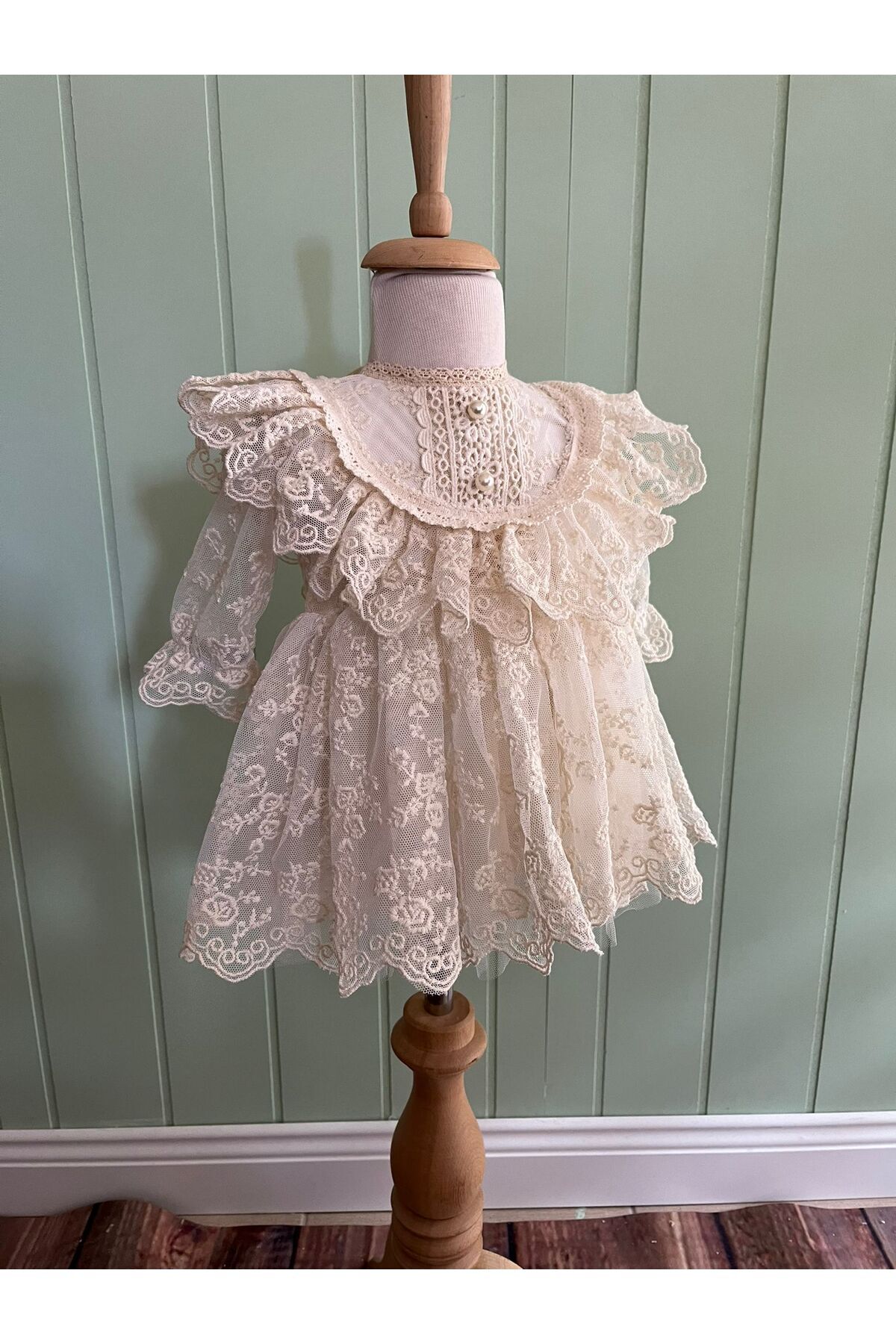 Krem çiçek detaylı dantel elbise seti Krem çiçek detaylı dantel elbise seti cream 6-9 AY