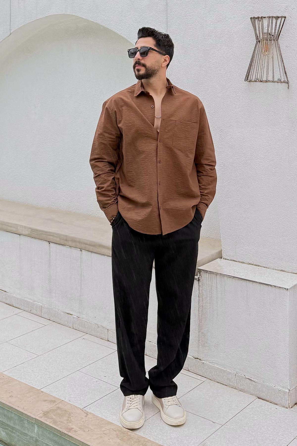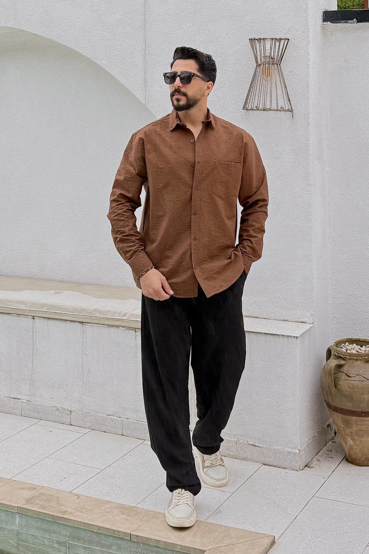 Regular Kraşlı Erkek Gömlek Acı Kahverengi Regular Kraşlı Erkek Gömlek Acı Kahverengi OMR1003 XL