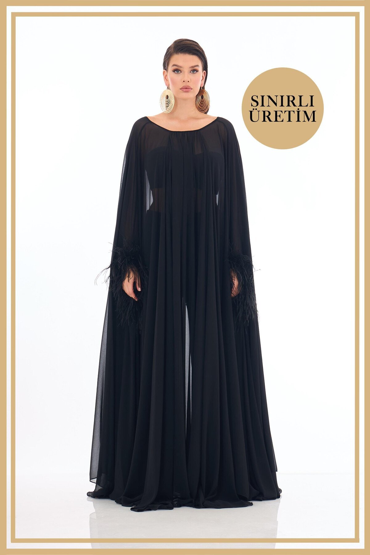 Şifon Dokulu Fırfır Detaylı Uzun Kimono Şifon Dokulu Fırfır Detaylı Uzun Kimono IMB300002 XL