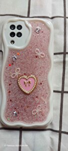 Samsung Galaxy A12 / M12 Uyumlu Kalpli Pembe Simli İnci ve Kurdele Detaylı Şık Telefon Kılıfı Samsung Galaxy A12 / M12 Uyumlu Kalpli Pembe Simli İnci ve Kurdele Detaylı Şık Telefon Kılıfı smsa12kalp تک سایز