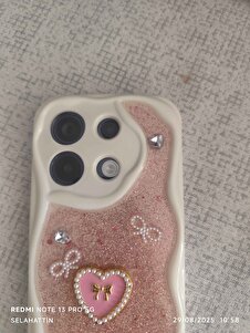 Xiaomi Redmi Note 13 Uyumlu Kalpli Pembe Simli İnci ve Kurdele Detaylı Şık Telefon Kılıfı Xiaomi Redmi Note 13 Uyumlu Kalpli Pembe Simli İnci ve Kurdele Detaylı Şık Telefon Kılıfı mgcnote13 تک سایز