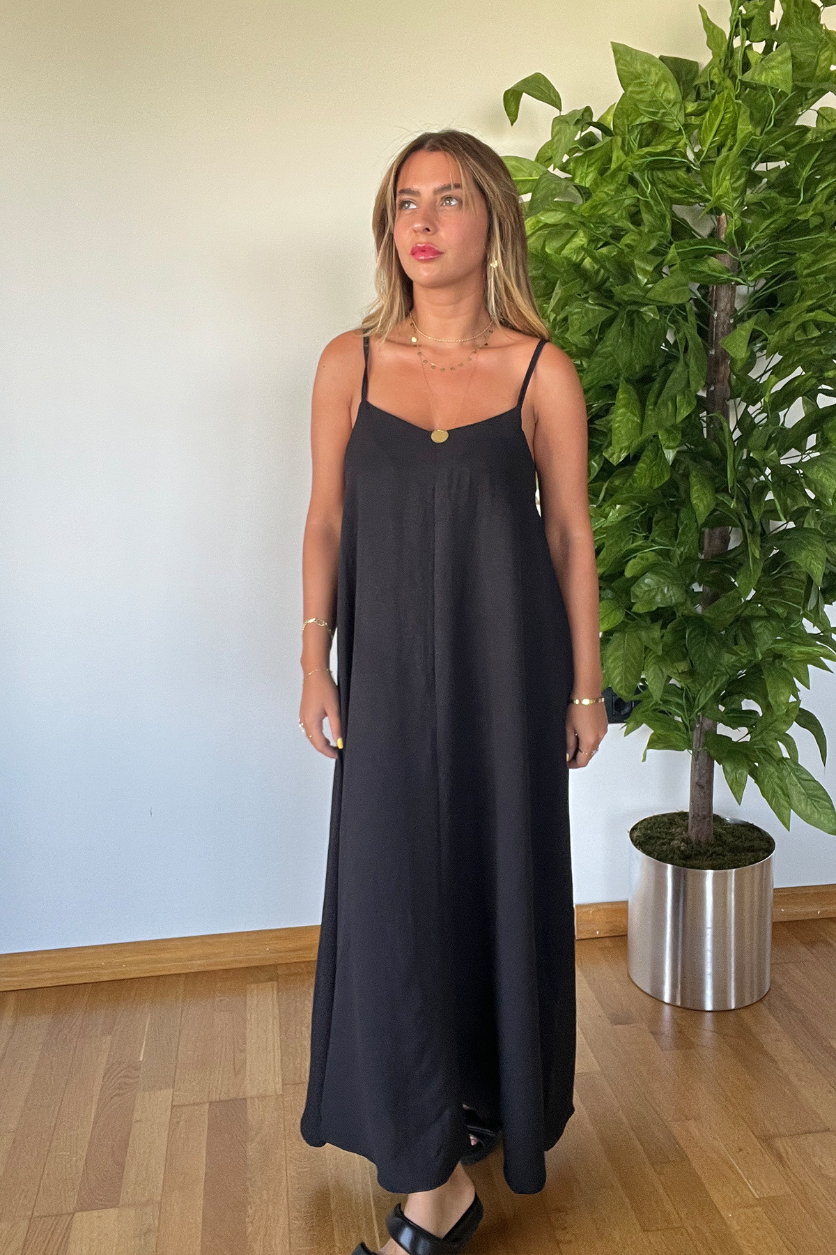 2025 Yeni Sezon Siyah Askılı Bol Kesim Yazlık Günlük Şık Uzun Elbise Rahat Düz Model Minimal Tarz 2025 Yeni Sezon Siyah Askılı Bol Kesim Yazlık Günlük Şık Uzun Elbise Rahat Düz Model Minimal Tarz Hafif Kumaş Hamile Relax Tiril Kıyafet L