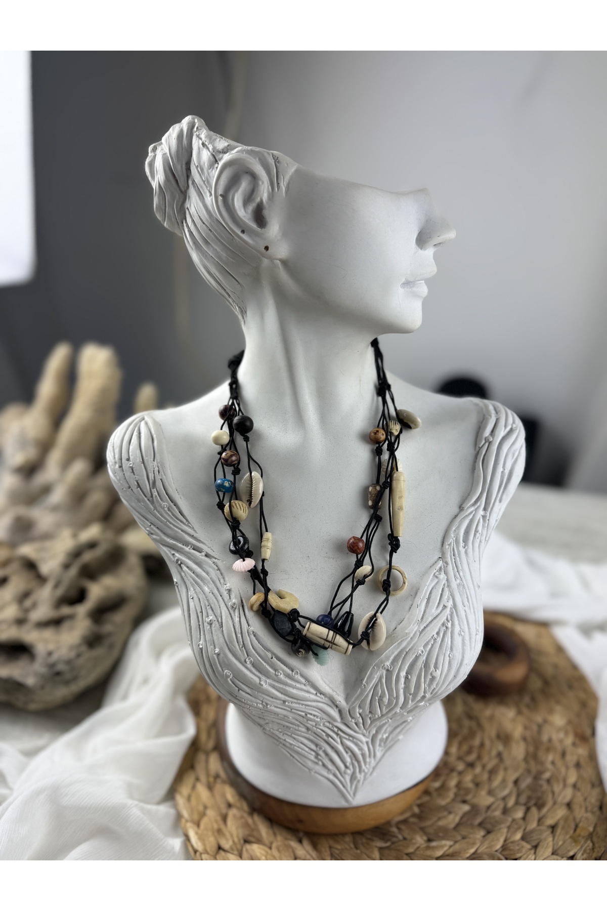 Ekose Vintage uzun kolye Ekose Vintage uzun kolye ahşap3 M