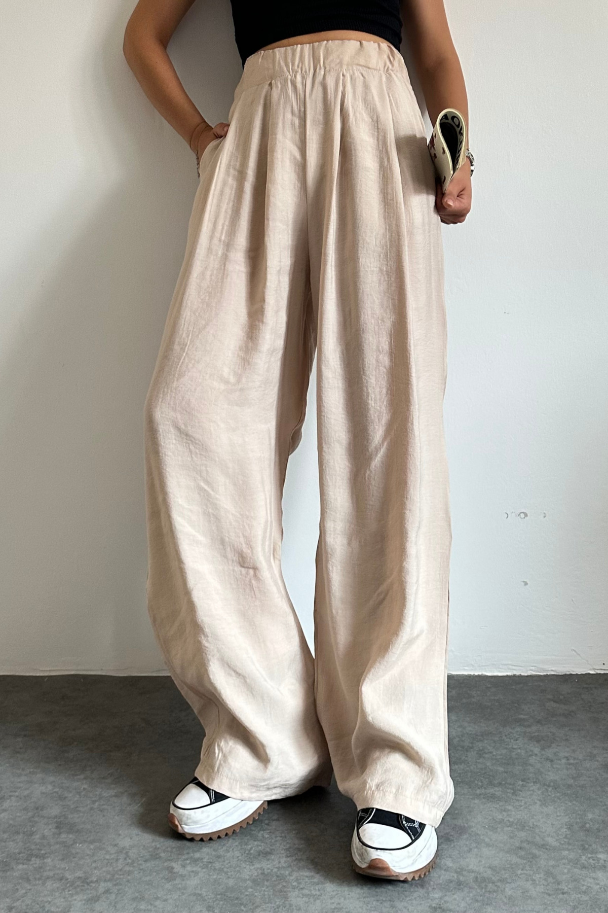 2009 Beli Lastikli Paraşüt Kumaş Palazzo Kadın Pantolon 2009 Beli Lastikli Paraşüt Kumaş Palazzo Kadın Pantolon FM2009 42