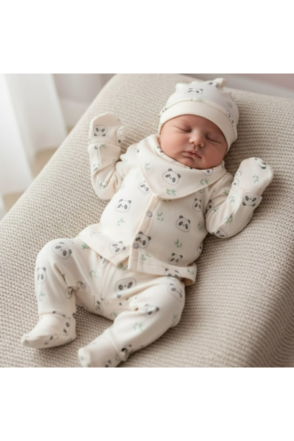 ORGANİK PAMUK PANDA DESENLİ 5Li HASTANE ÇIKIŞ SETİ ORGANİK PAMUK PANDA DESENLİ 5Li HASTANE ÇIKIŞ SETİ Ke36737 0-3 AY