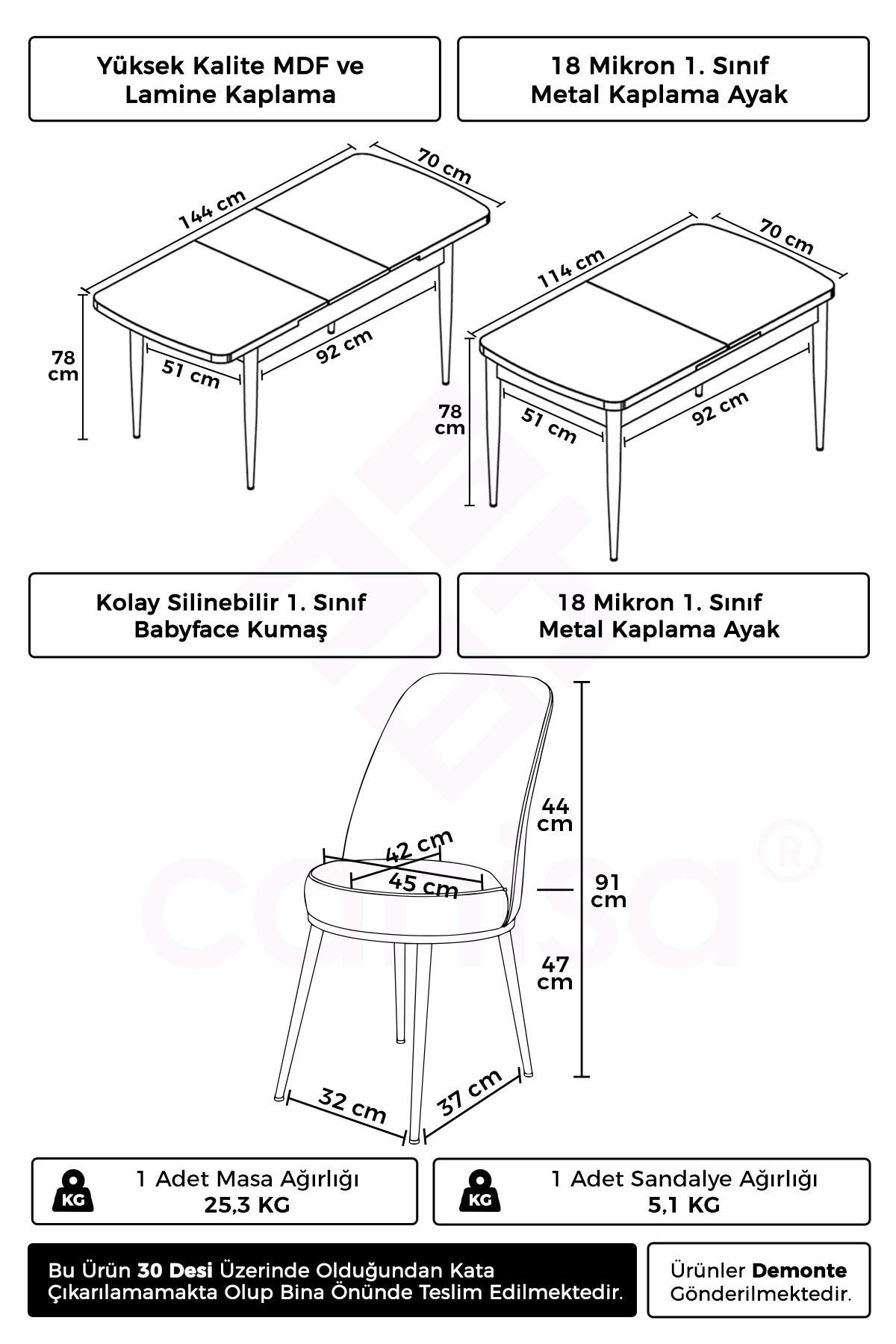 Nira Serisi 70x114 Mdf Açılabilir Beyaz Masa Takımı 6 Krem Sandalye Krom Detay Nira Serisi 70x114 Mdf Açılabilir Beyaz Masa Takımı 6 Krem Sandalye Krom Detay NİRA06BYZ06KRM تک سایز