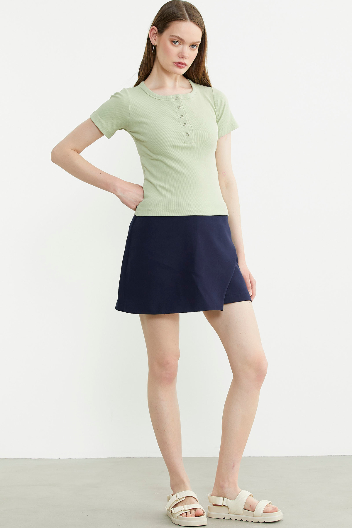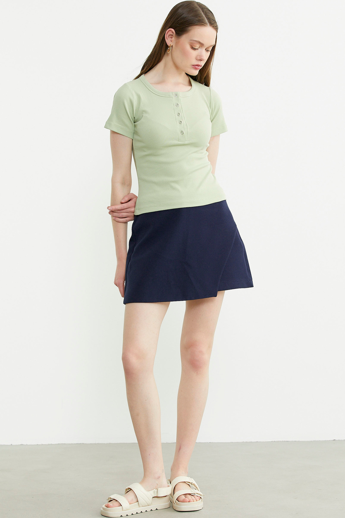 Düğmeli Kısa Kol Basic Tişört - Yeşil Düğmeli Kısa Kol Basic Tişört - Yeşil 25Y2231-60103.0001 XL