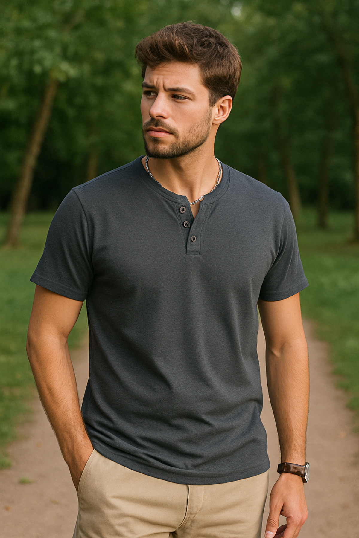2124 Henley Tişört Kahverengi Düğme Detaylı Basic Casual T shirt 2124 Henley Tişört Kahverengi Düğme Detaylı Basic Casual T shirt 2XL