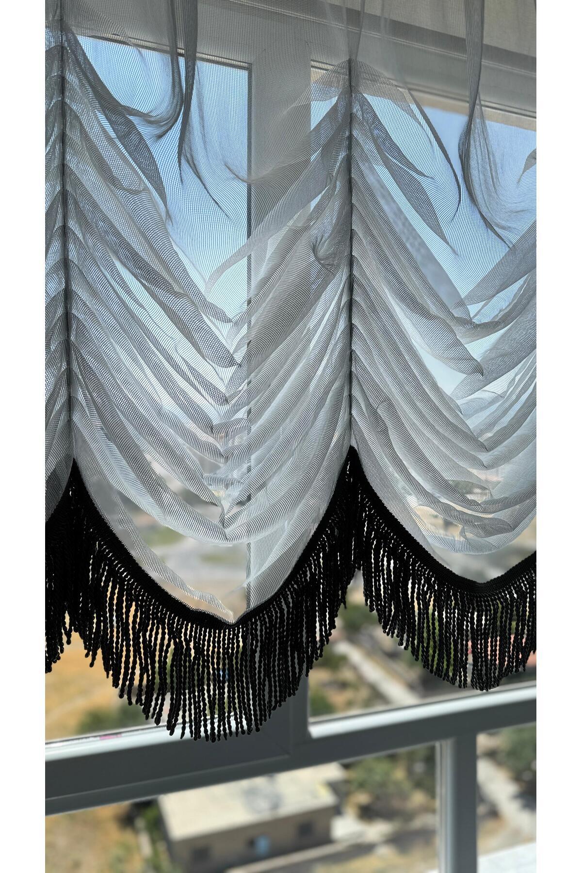 Gri Püsküllü Çelik Tül Balon Perde (Ütü İstemez) Gri Püsküllü Çelik Tül Balon Perde (Ütü İstemez) 90 x 280