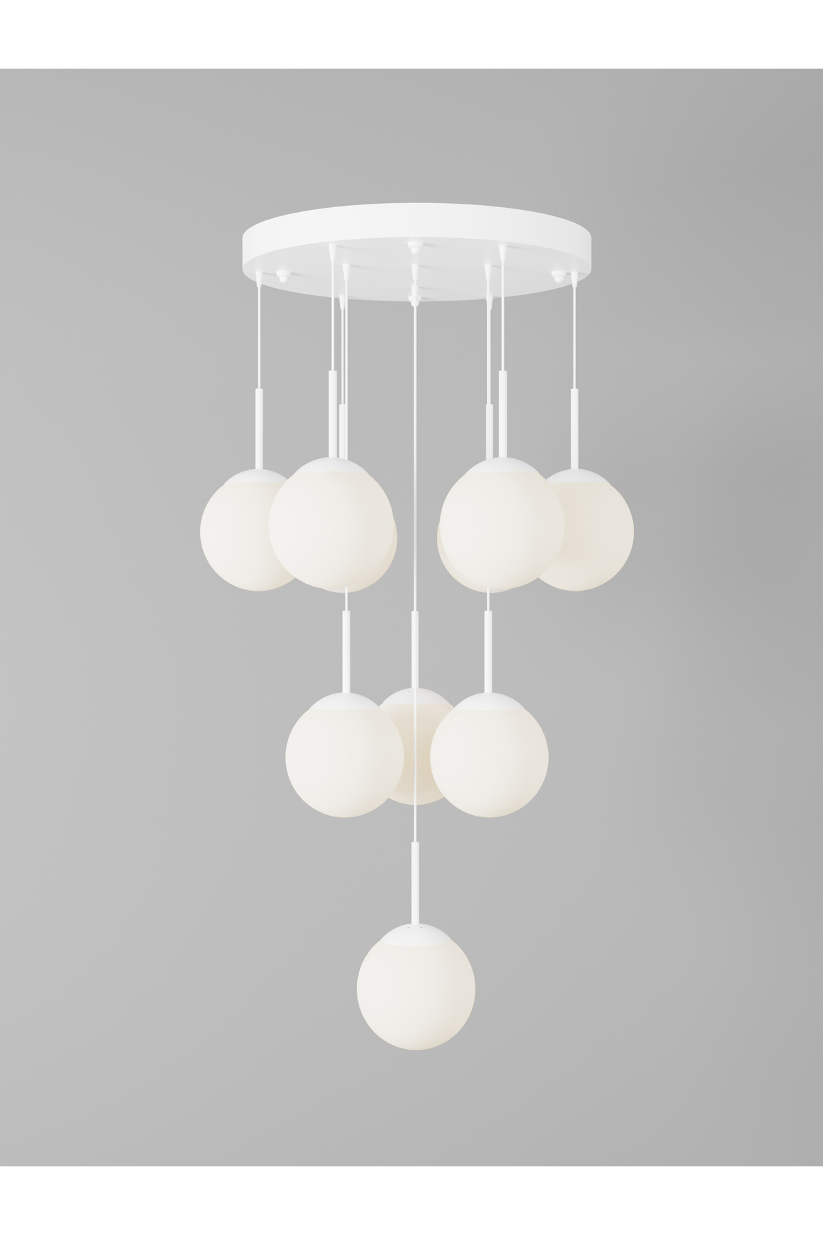 ECLIPSE Modern 10'lu Sarkıt Beyaz Metal Avize - Beyaz Renk Cam Küre, E27 Duy, Dekoratif Aydınlatma ECLIPSE Modern 10'lu Sarkıt Beyaz Metal Avize - Beyaz Renk Cam Küre, E27 Duy, Dekoratif Aydınlatma تک سایز