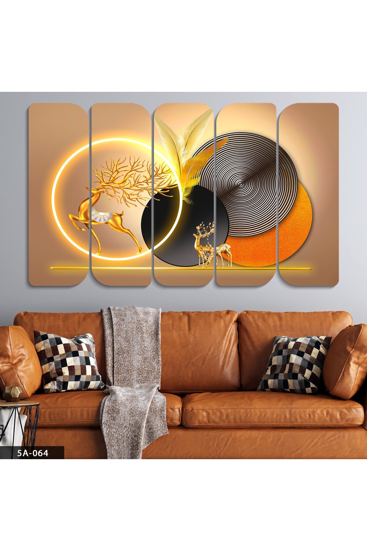 Gold Neon Geyik Yuvarlak Desenler 3 Parça Ahşap Çerçeveli Tablo Gold Neon Geyik Yuvarlak Desenler 3 Parça Ahşap Çerçeveli Tablo BCT036 120 x 40
