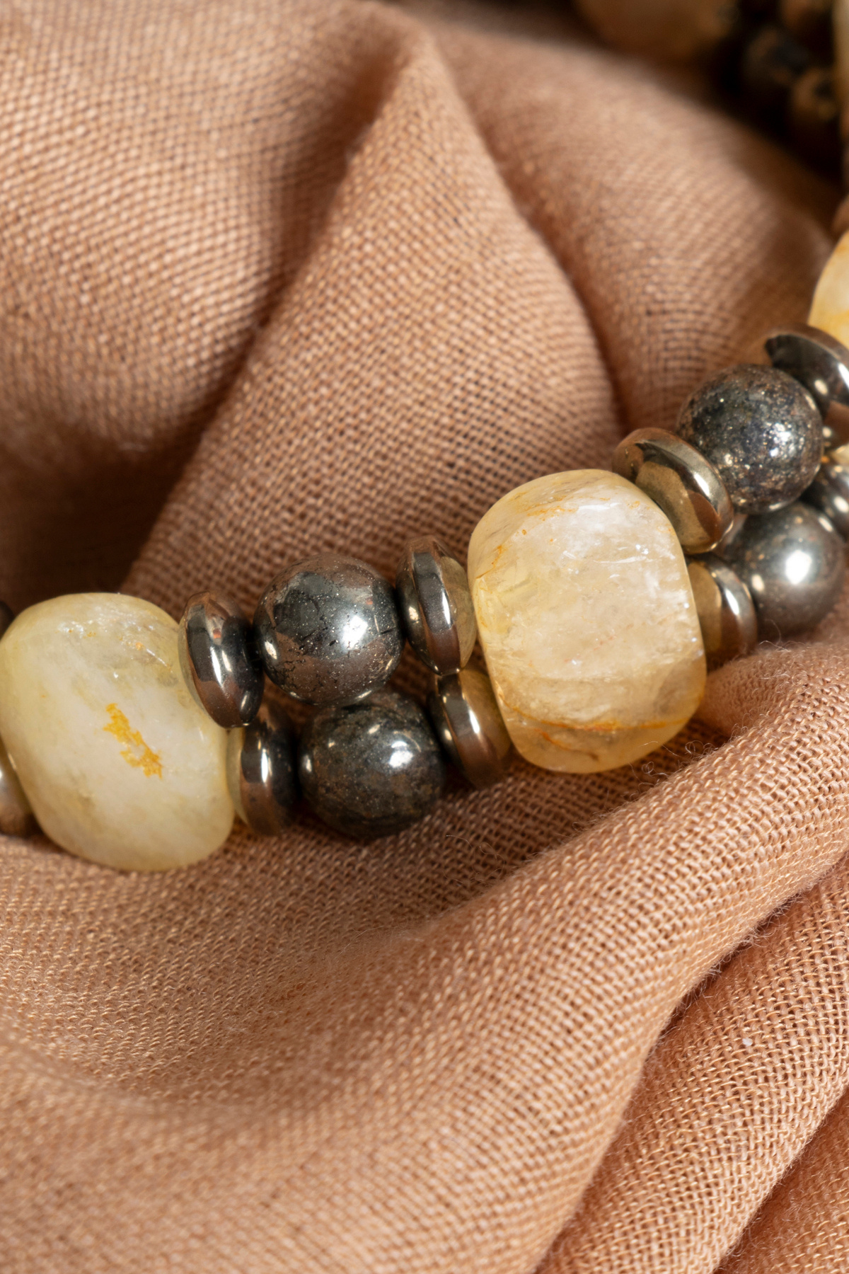 Sertifikalı sitrin - pirit - hematit doğal taş bileklik Sertifikalı sitrin - pirit - hematit doğal taş bileklik ODT-757232213691 21-22