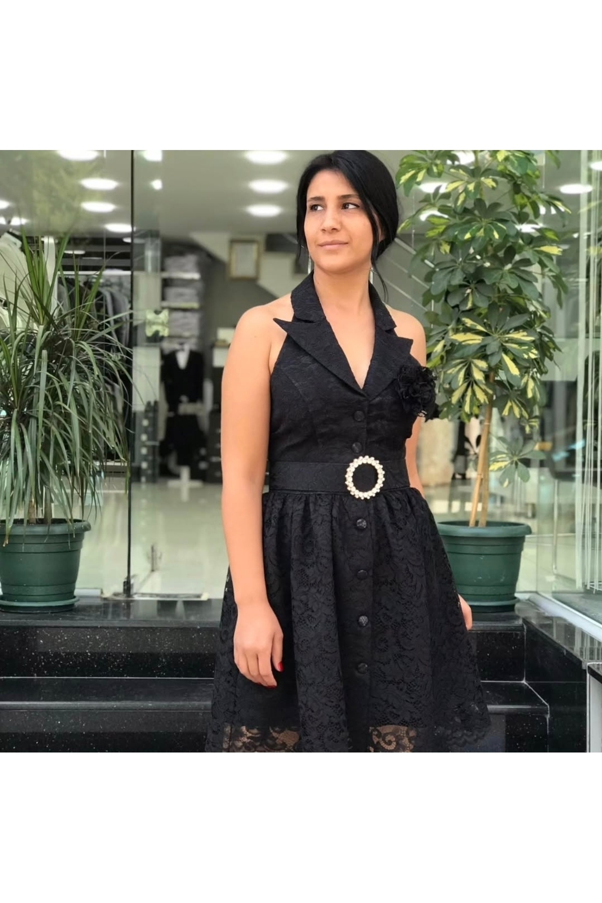 Boyundan Detaylı Kemerli Dantel Elbise Boyundan Detaylı Kemerli Dantel Elbise 24YBYG1097 40