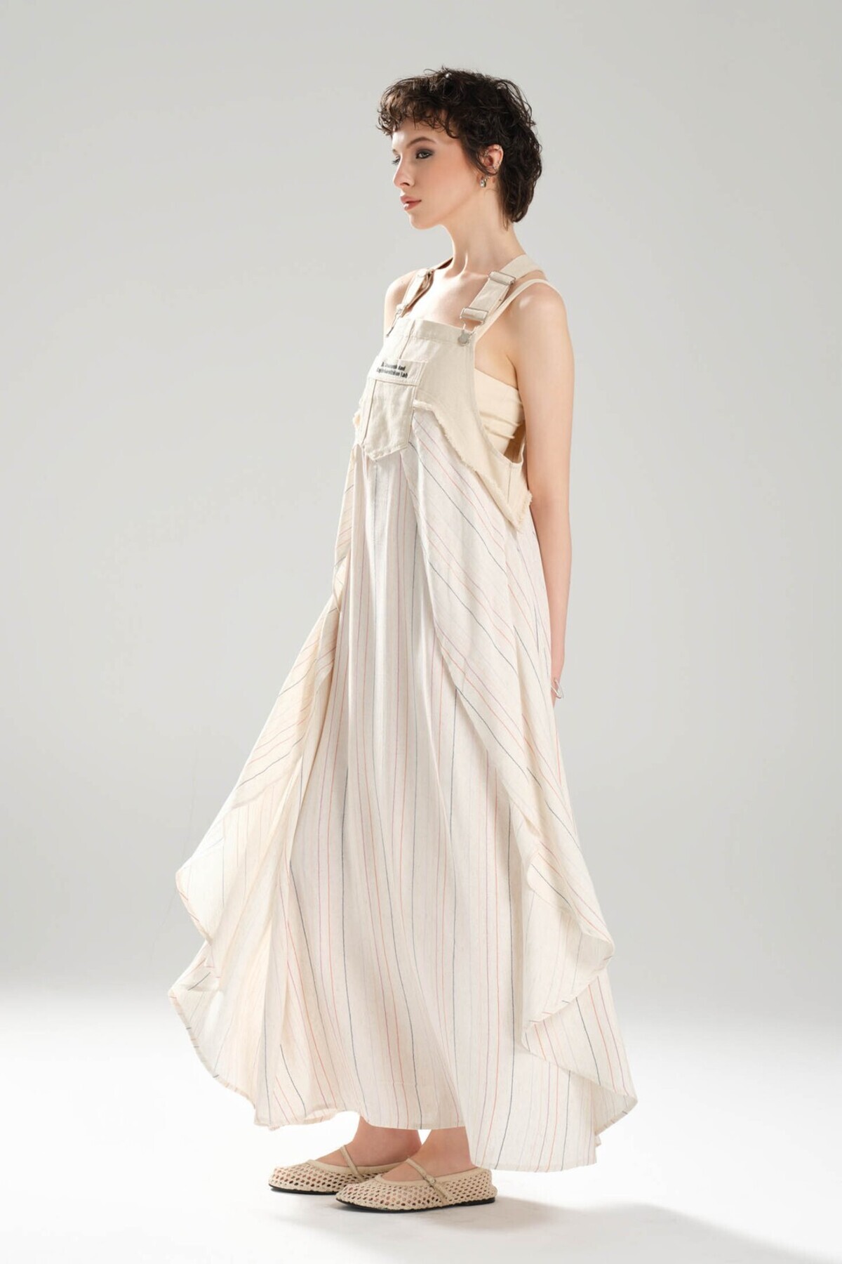 Kadın Keten Gabardin Kumaş Tasarım Uzun Salopet Elbise Kadın Keten Gabardin Kumaş Tasarım Uzun Salopet Elbise TW3-1247 L