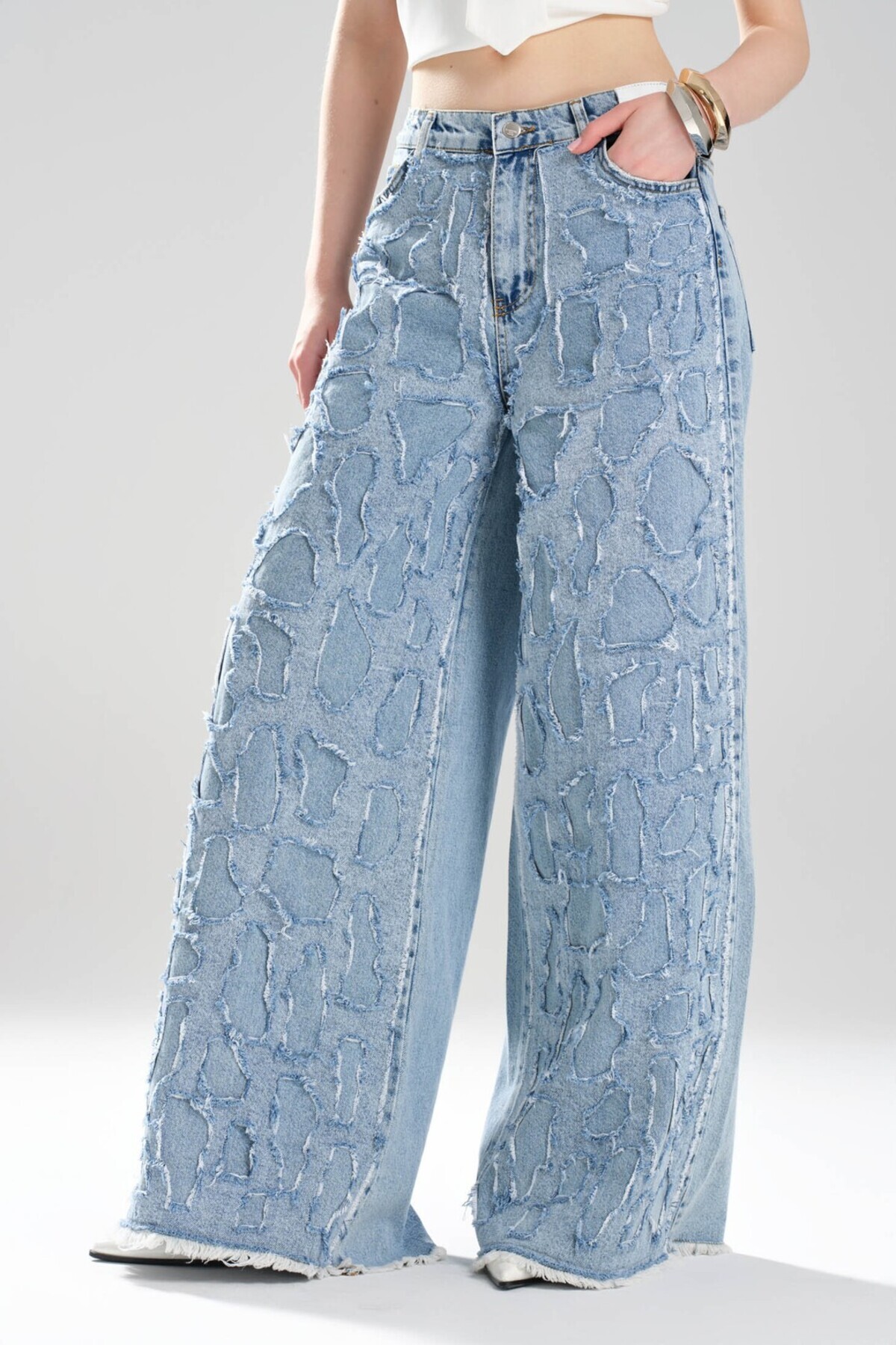 Kadın Kalp Nakışlı Tasarım Denim Palazzo Jean Kadın Kalp Nakışlı Tasarım Denim Palazzo Jean TW3-1294 L