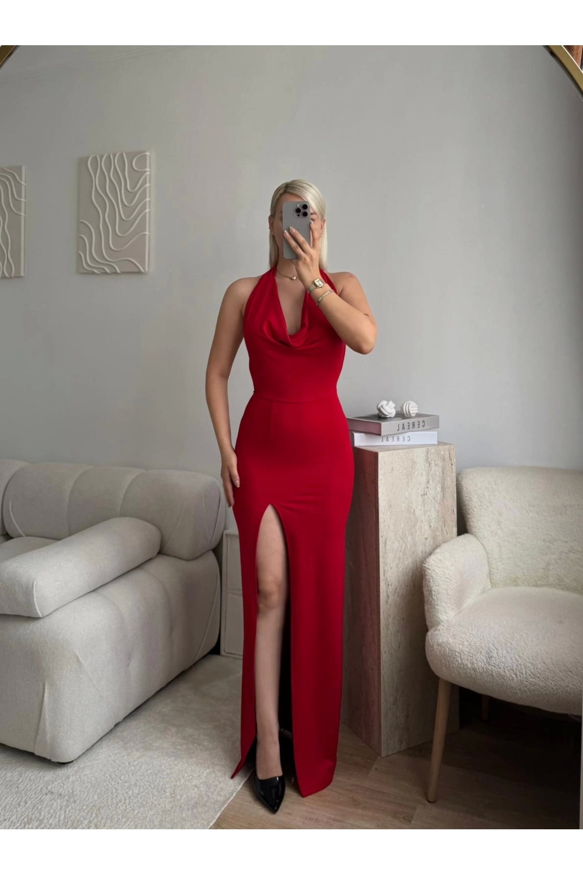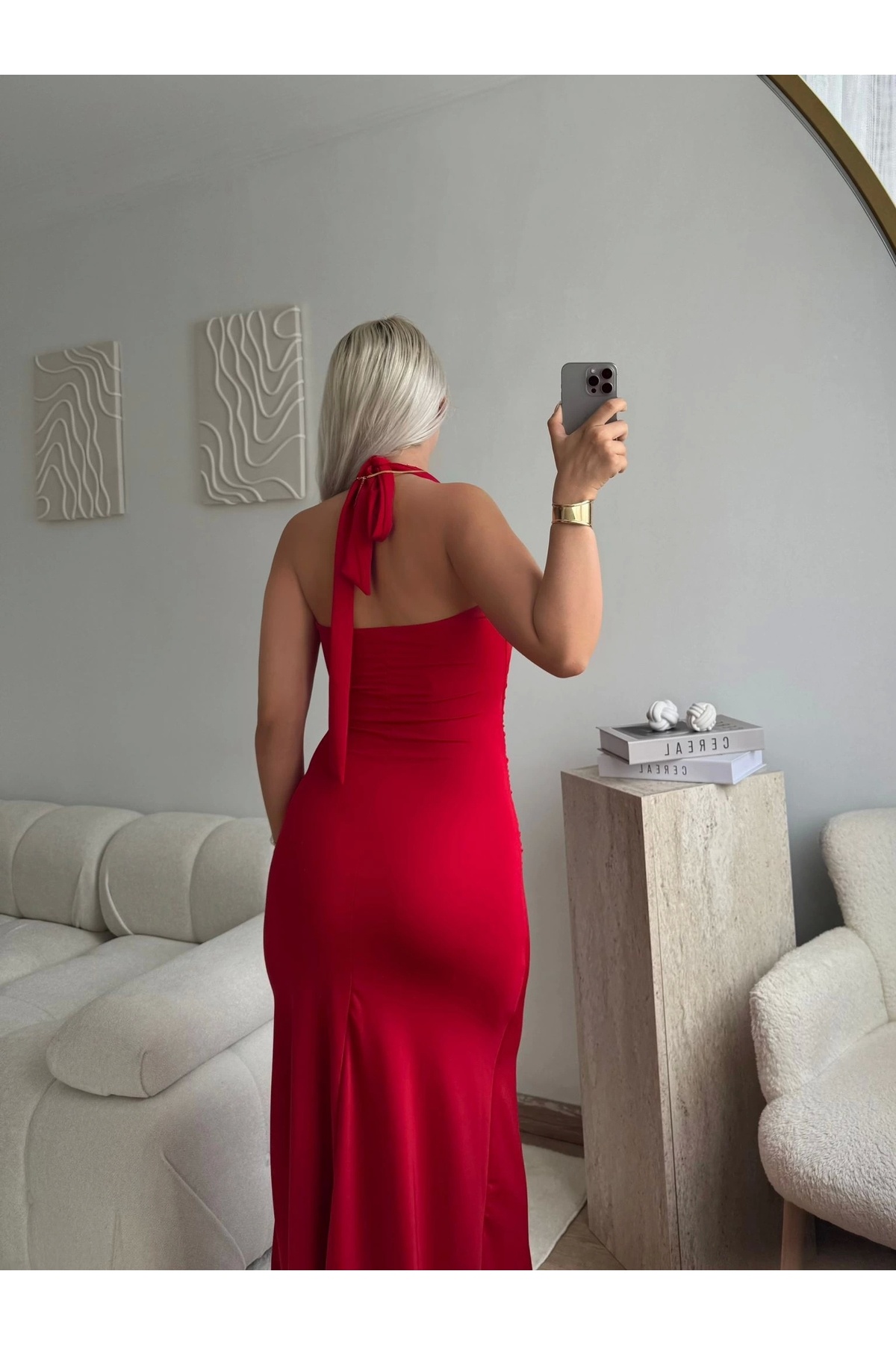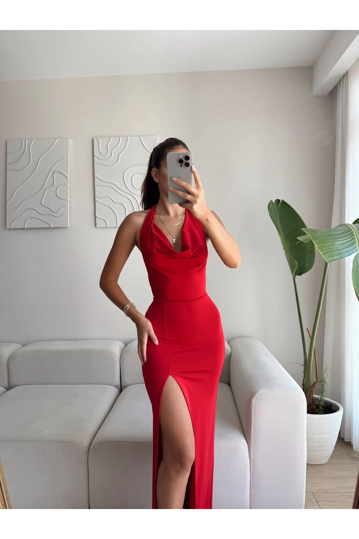 Boyun Bağlamalı Maxi Elbise - KIRMIZI Boyun Bağlamalı Maxi Elbise - KIRMIZI P3136S3354 XL