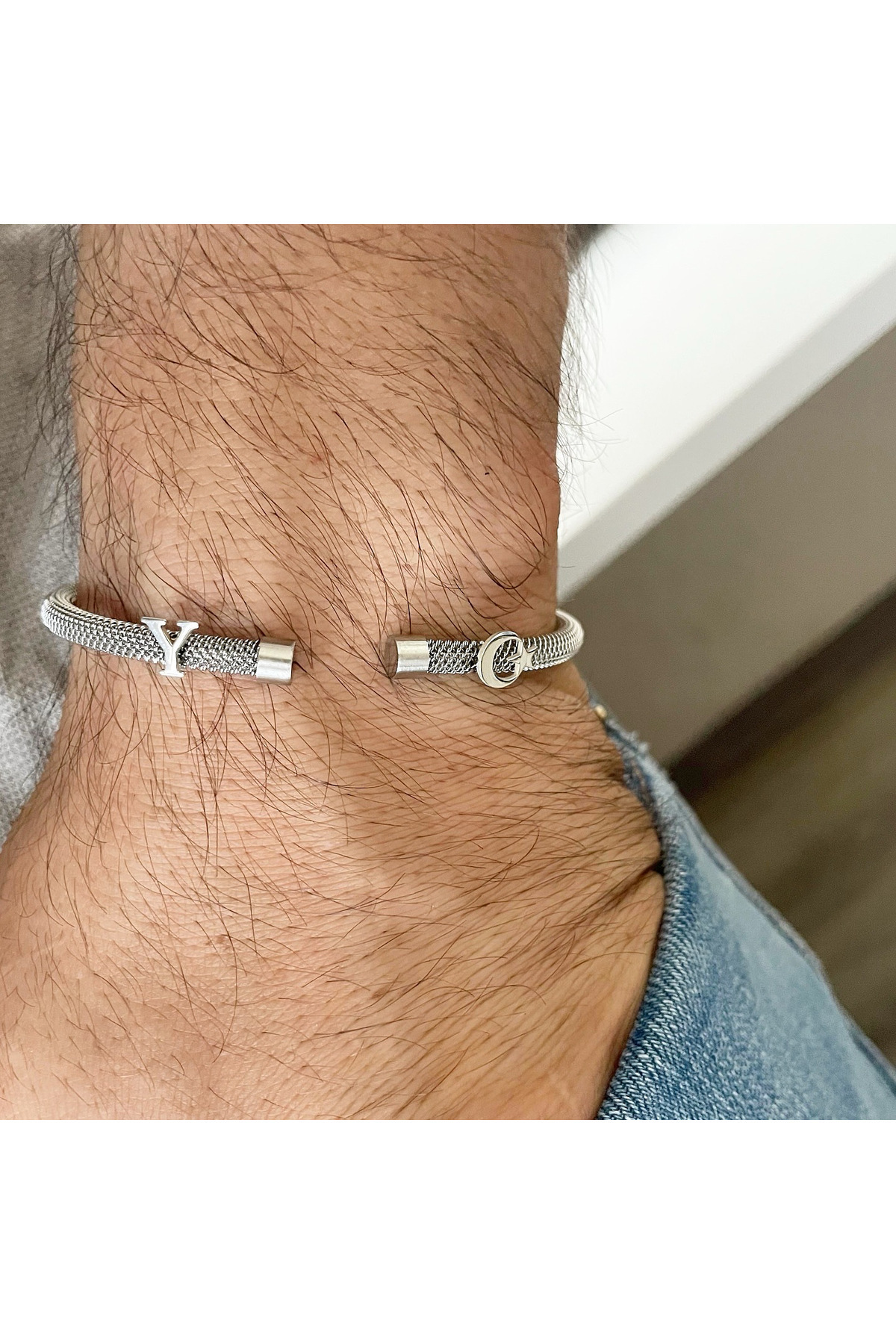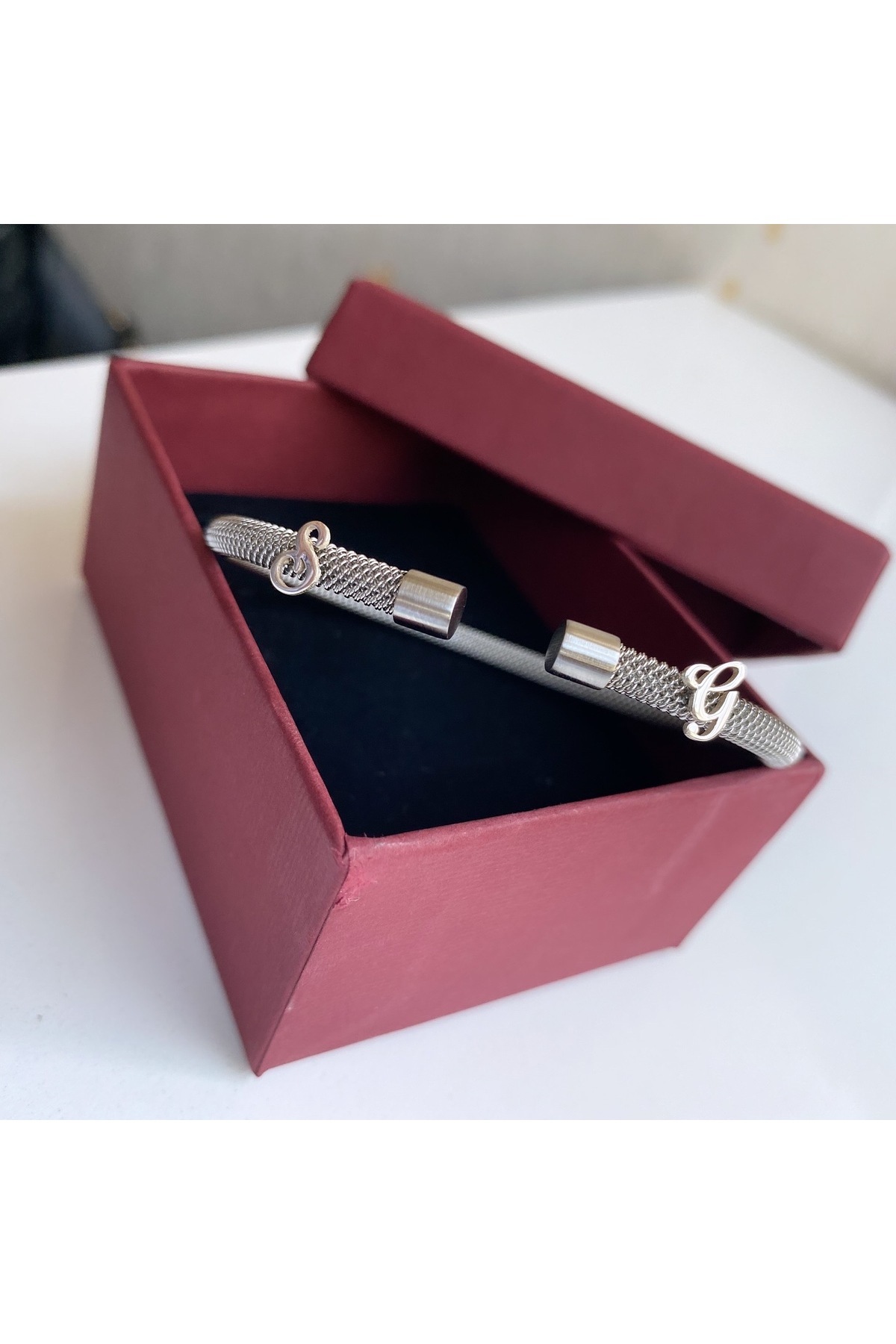 Gümüş Harfli VE Ayyıldız Sembollü Beyaz Çelik Bileklik Gümüş Harfli VE Ayyıldız Sembollü Beyaz Çelik Bileklik Smr1441 6 cm