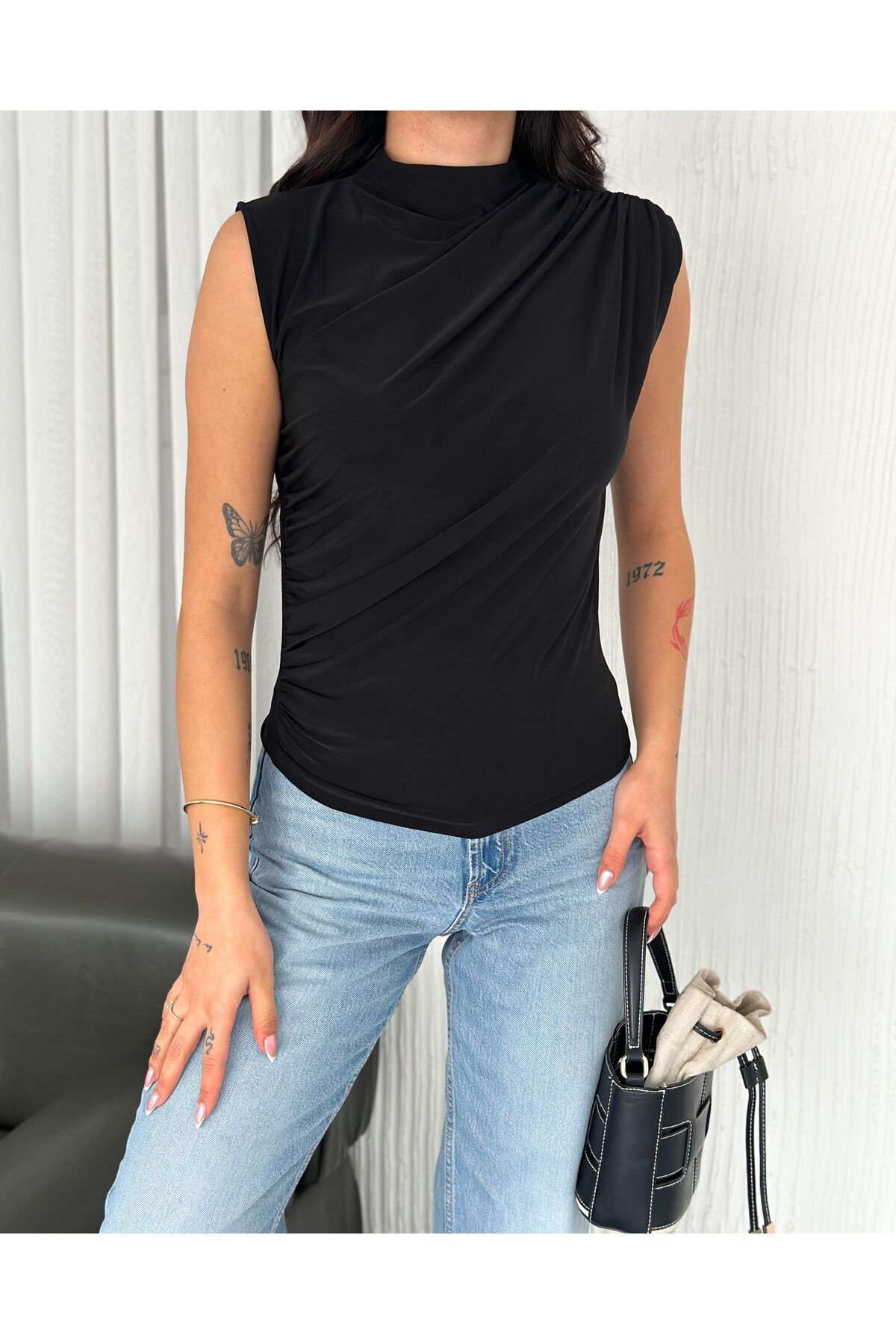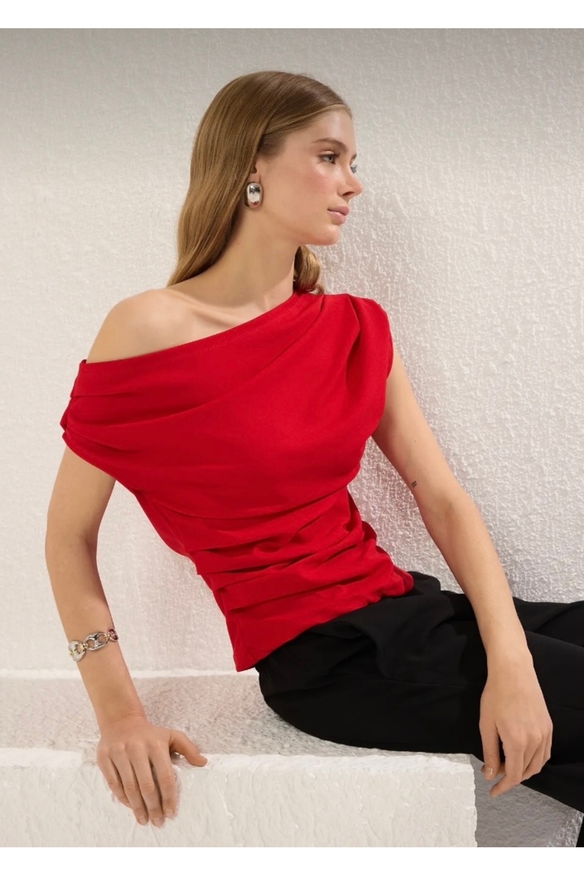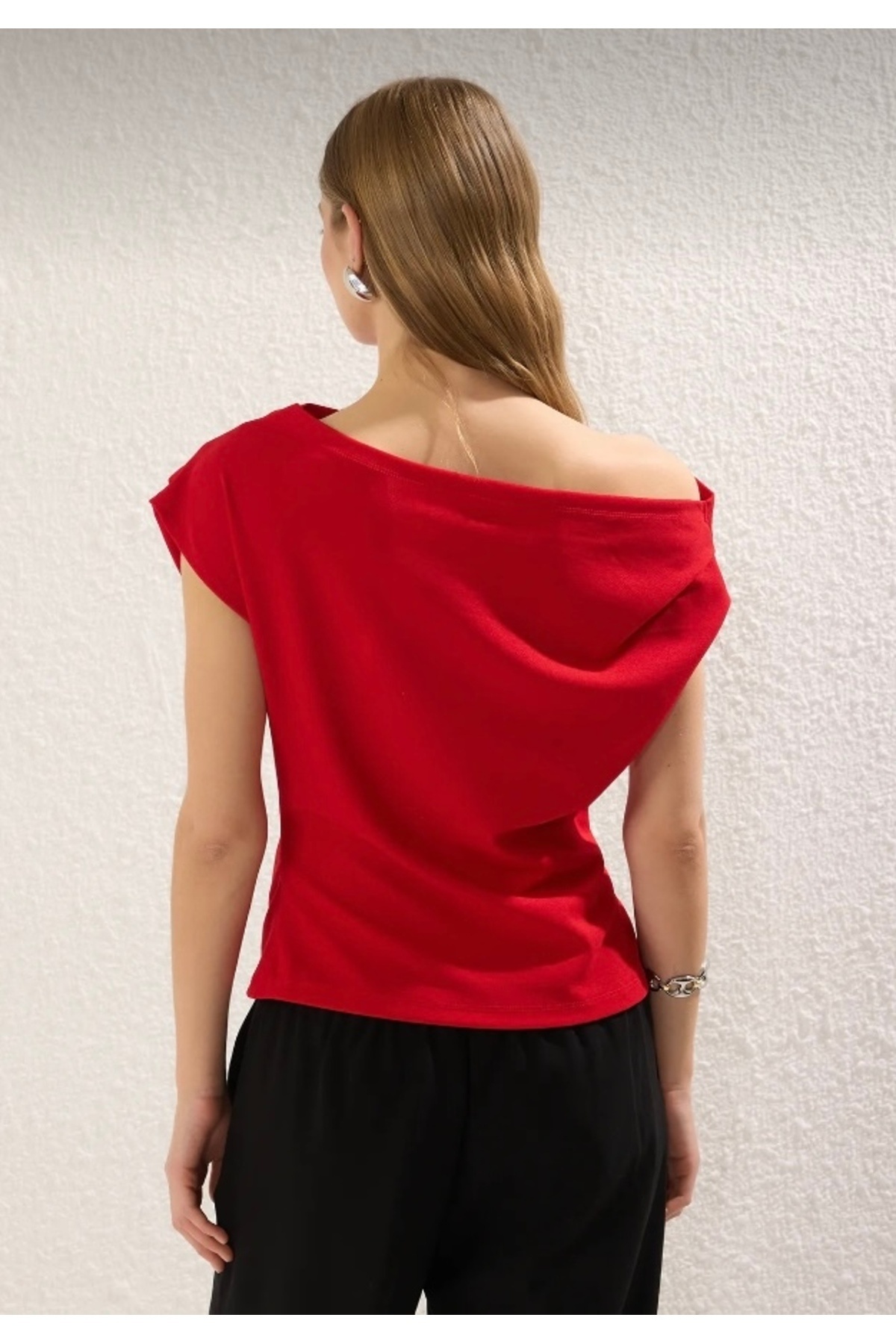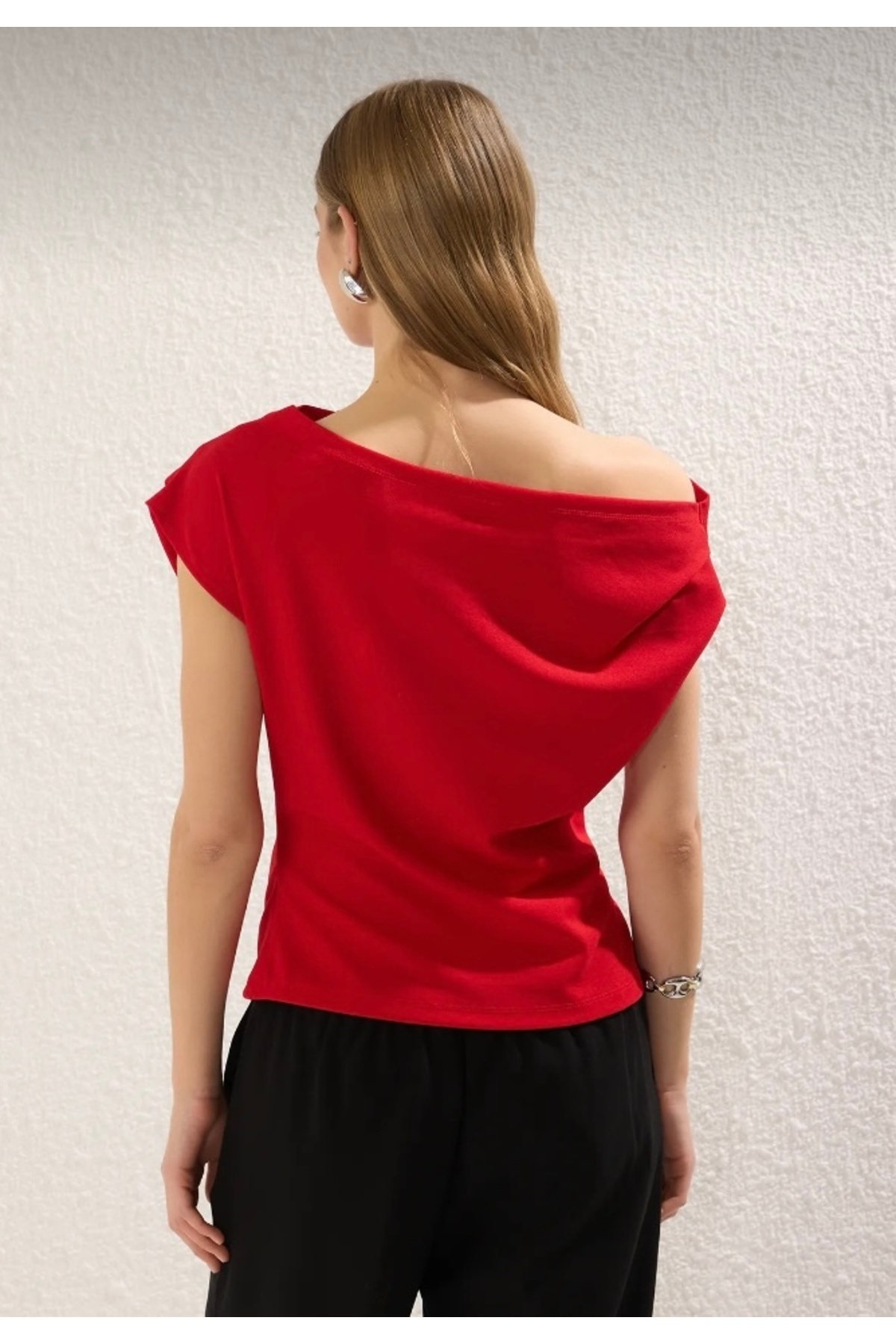 Büzgü-drape Detaylı Asimetrik Yaka Örme Bluz Büzgü-drape Detaylı Asimetrik Yaka Örme Bluz w151515BNB151515 L
