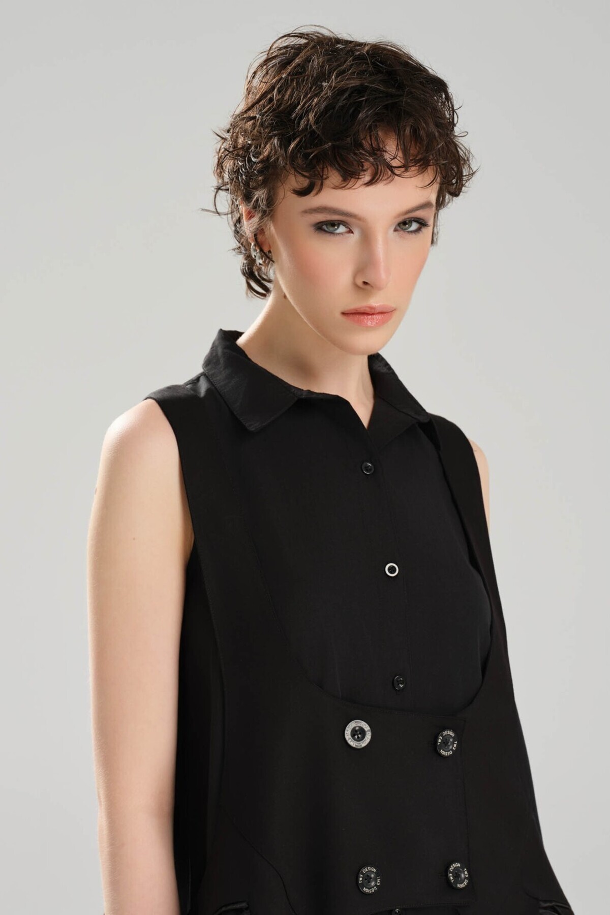 Kadın Çift Parça Çıkarılabilir Yelek Detaylı Tasarım Gömlek Elbise Kadın Çift Parça Çıkarılabilir Yelek Detaylı Tasarım Gömlek Elbise TW3-1345 L