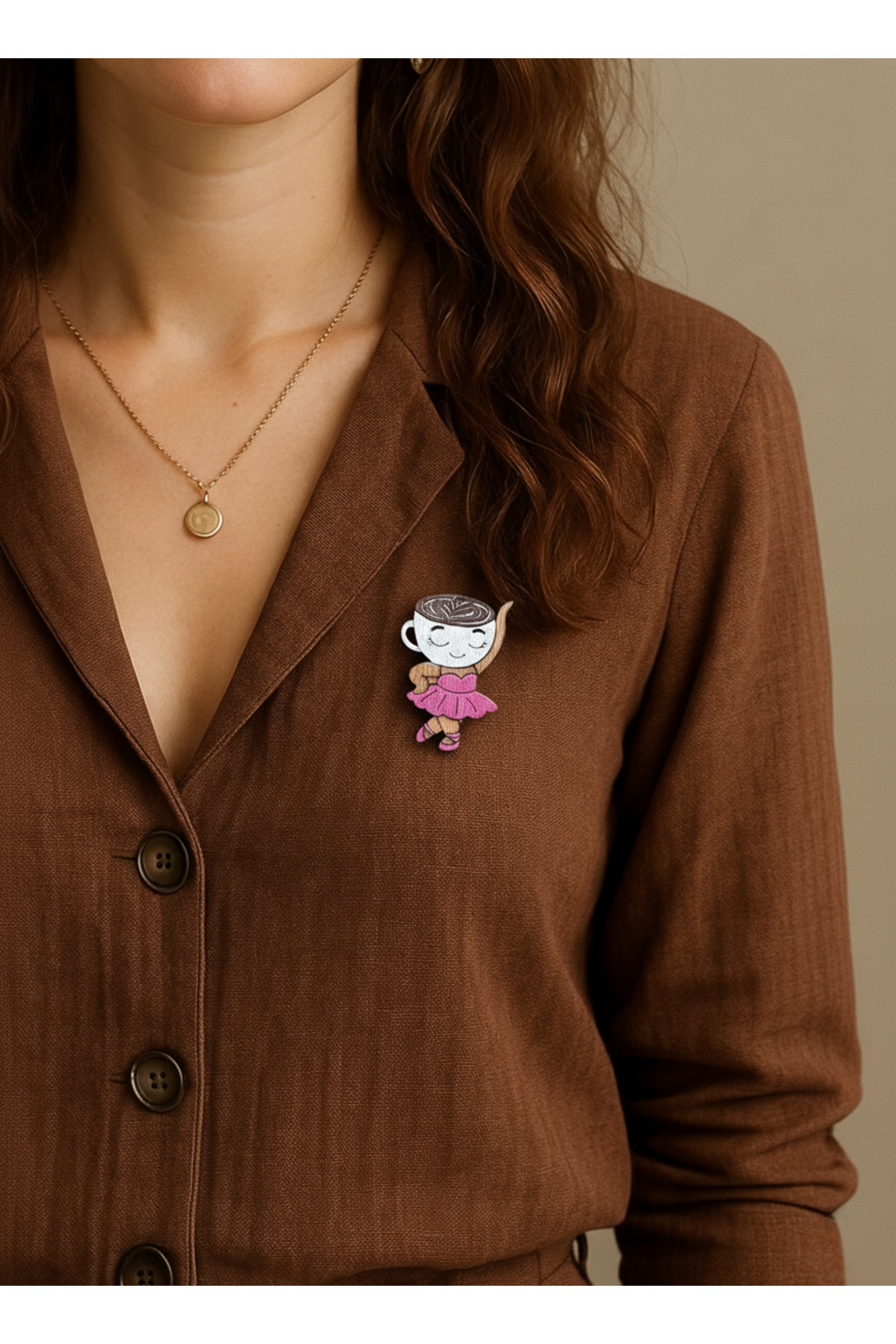 Barista Capybara CapyBarista Ahşap El Boyaması Broş Barista Capybara CapyBarista Ahşap El Boyaması Broş GTBROS065 تک سایز