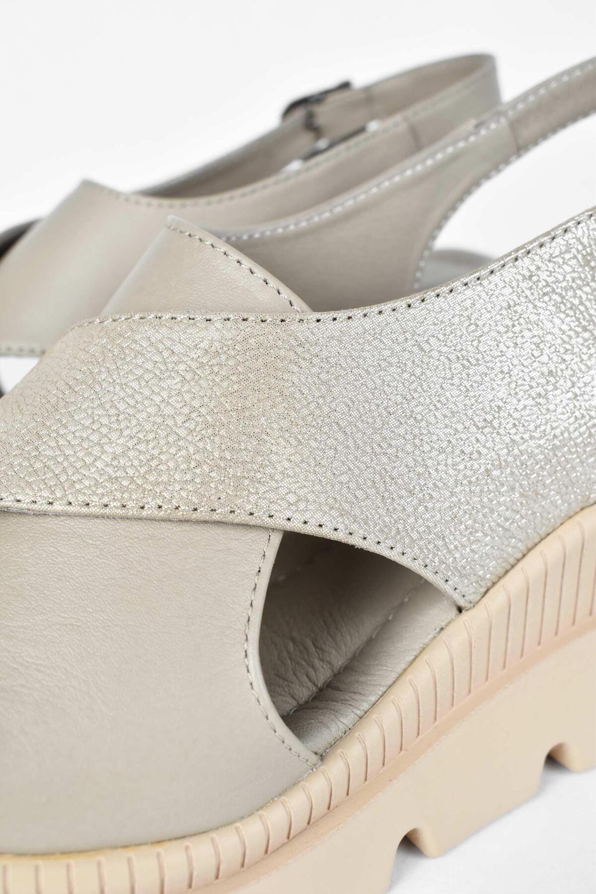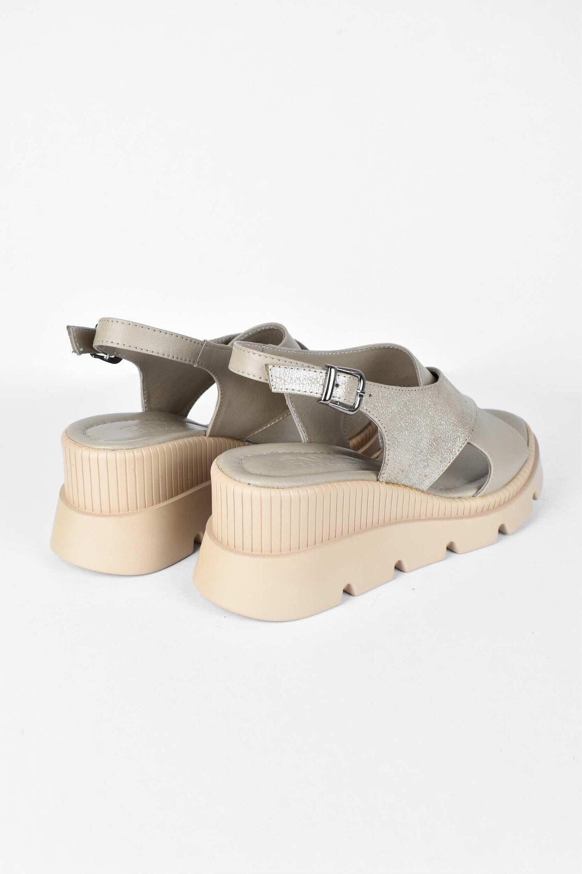 Kadın Hakiki Deri Simli Çapraz Bantlı Dolgu Topuklu Günlük Sandalet - Bej Kadın Hakiki Deri Simli Çapraz Bantlı Dolgu Topuklu Günlük Sandalet - Bej A35 40