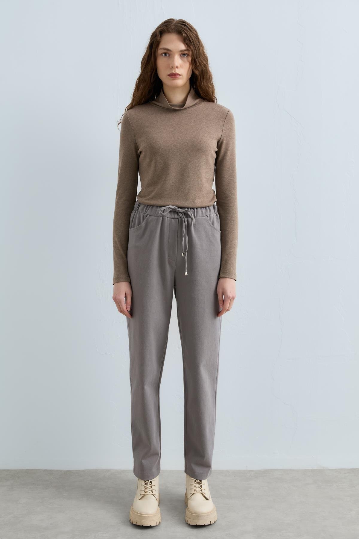 Beli Lastikli Boru Paça Örme Pantolon Lacivert Beli Lastikli Boru Paça Örme Pantolon Lacivert 242PA4118NH.1 42