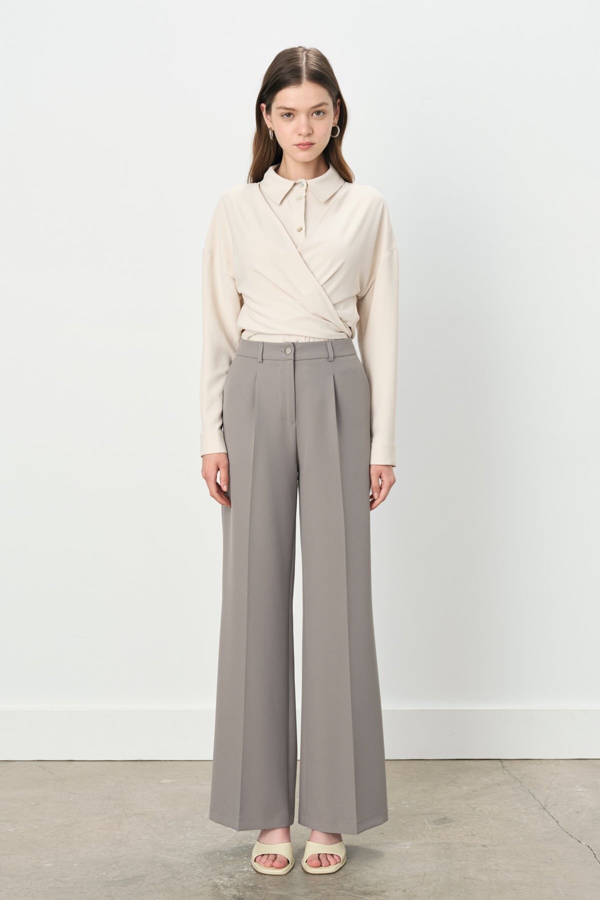 Düğme Detaylı Boru Paça Pantolon Taş Düğme Detaylı Boru Paça Pantolon Taş 251PA4067NH.1 42