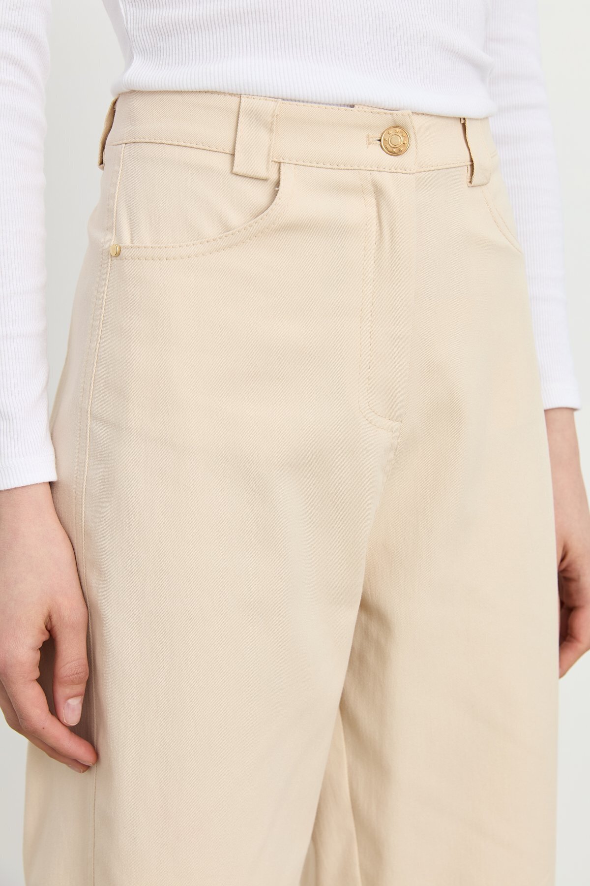 Havuç Kanvas Denim Pantolon Krem Havuç Kanvas Denim Pantolon Krem 251PA1062NH.1 42