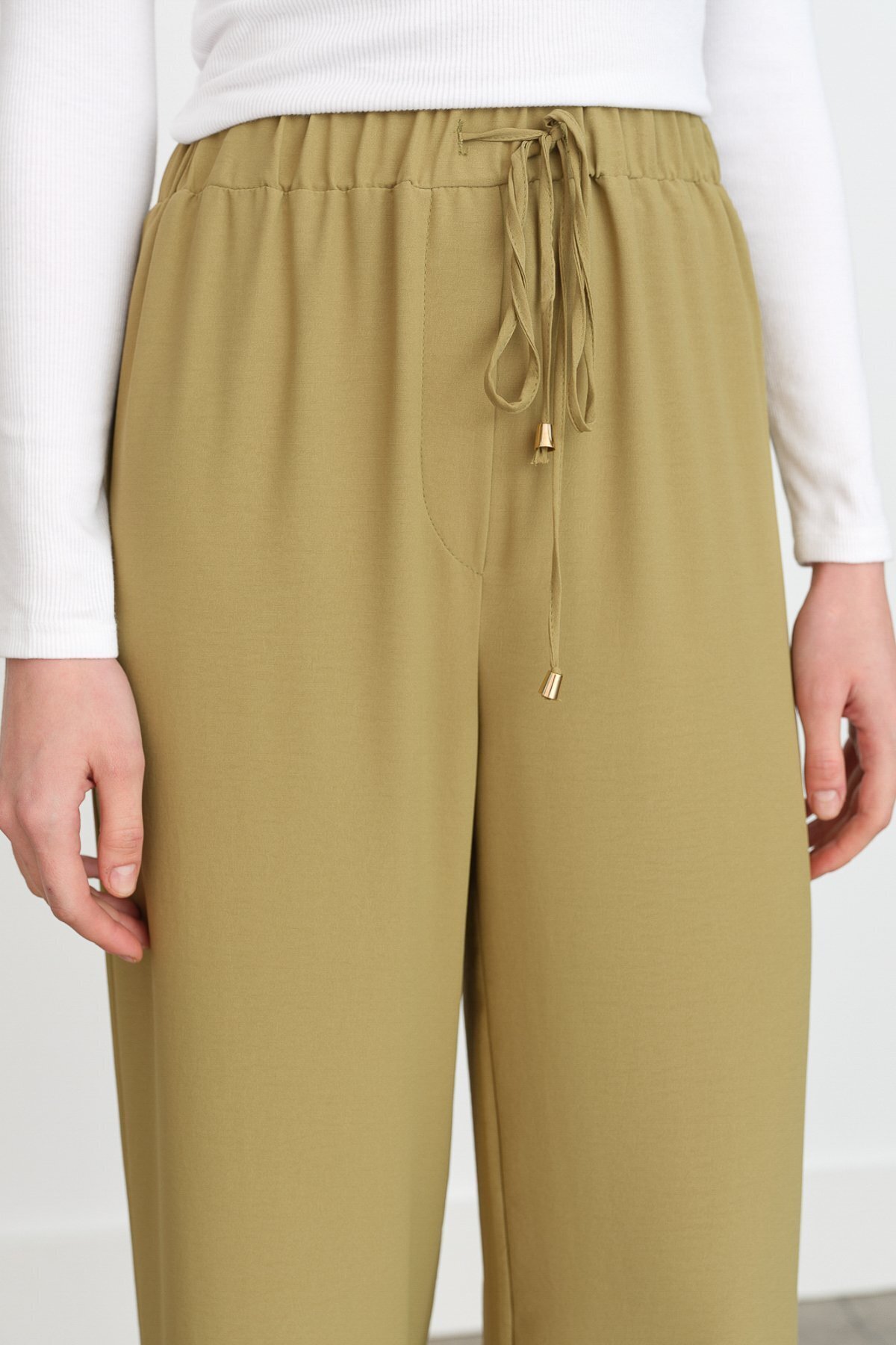 Beli Lastikli Bol Paça Pantolon Olive Beli Lastikli Bol Paça Pantolon Olive 251PA4180NH.1 42