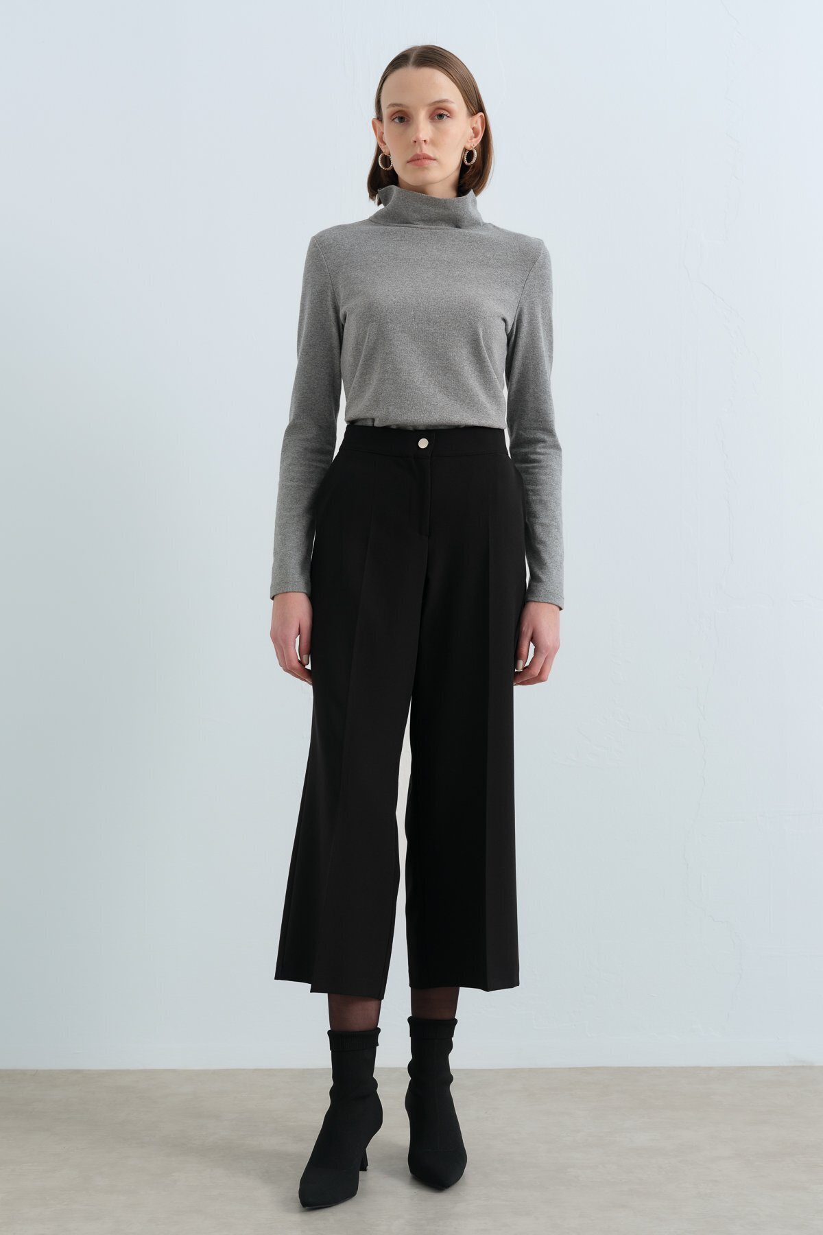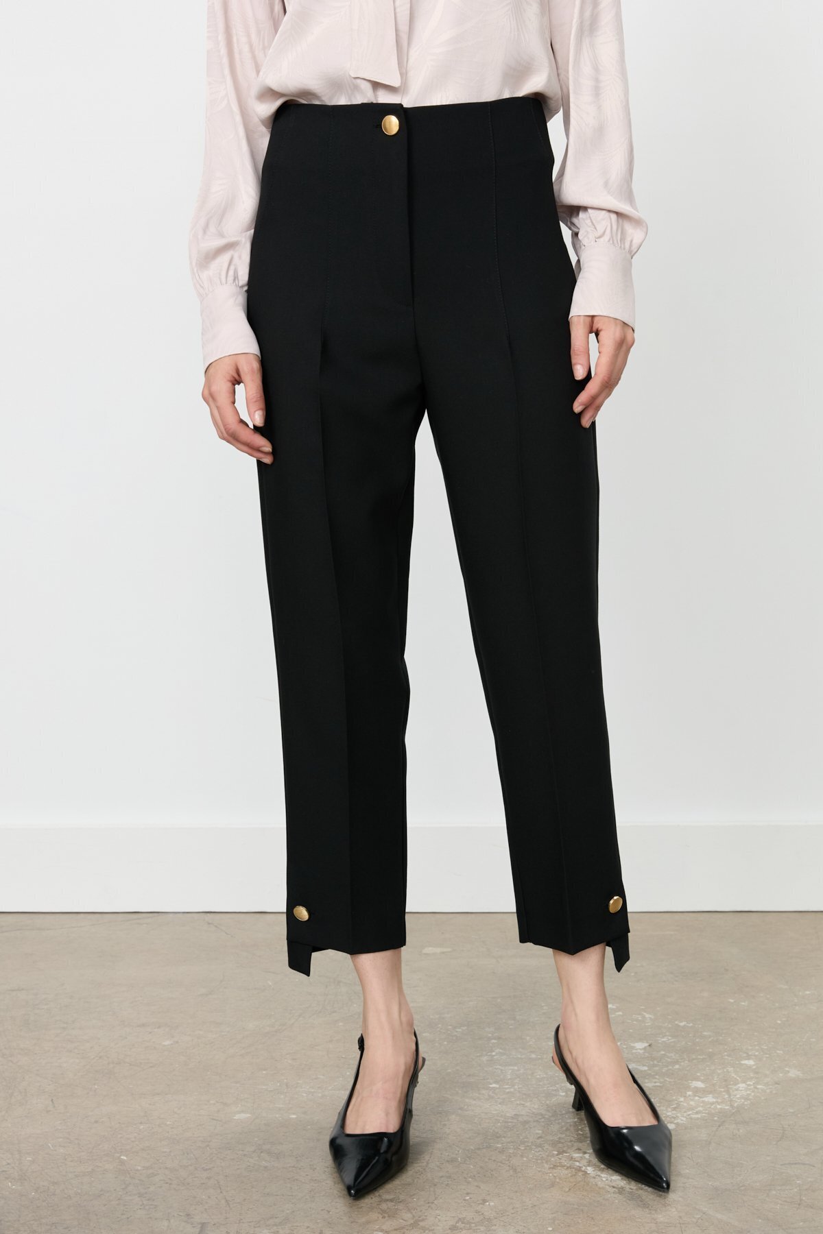 Gold Düğmeli Ütü İzli Poly. Viskon Pantolon Siyah Gold Düğmeli Ütü İzli Poly. Viskon Pantolon Siyah 251PA1543NH.1 42