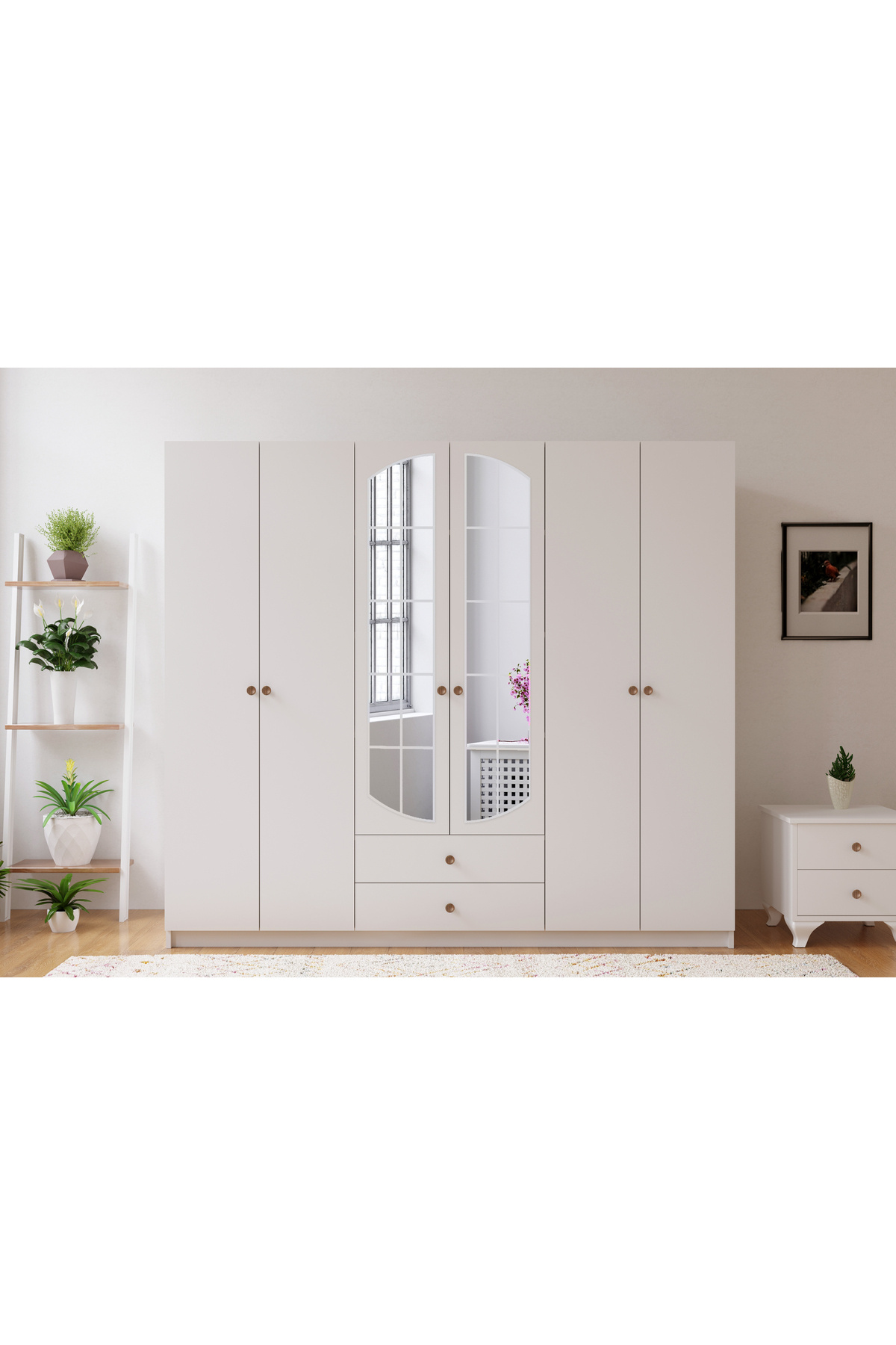 Ecem 6 Kapaklı 2 Çekmeceli Aynalı Gardırop Ecem 6 Kapaklı 2 Çekmeceli Aynalı Gardırop ecm105ayn 180 cm