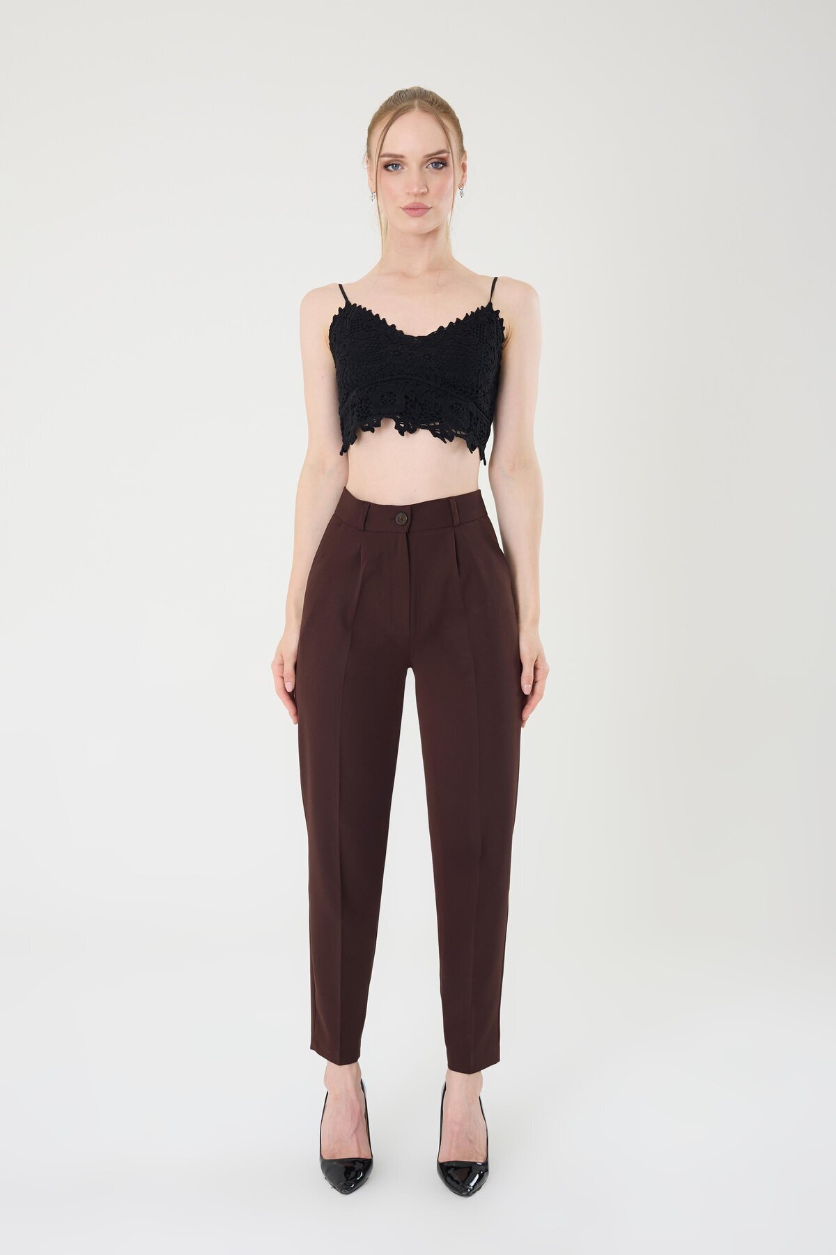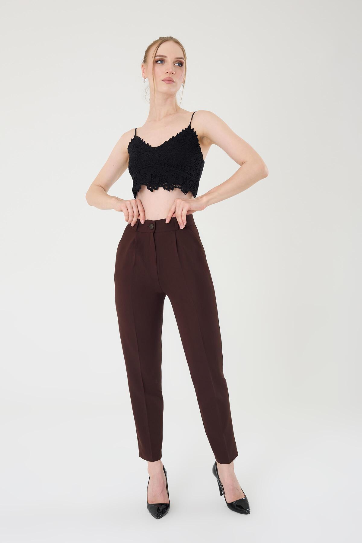 Kadın Kahverengi Dar Kesim Kumaş Pantolon Kadın Kahverengi Dar Kesim Kumaş Pantolon HZL2328 50