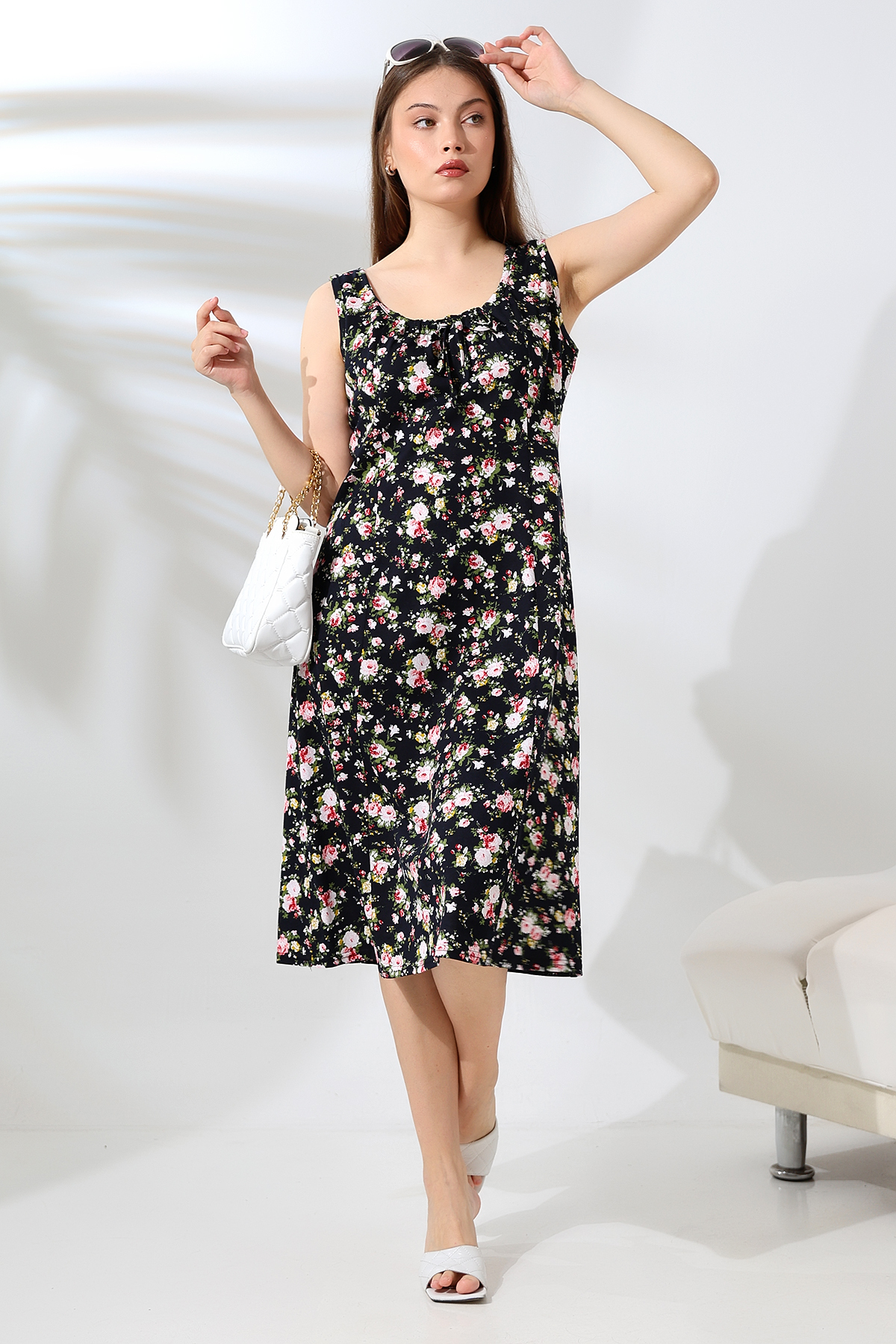 Kadın Likralı Penye Kumaş Boydan Süs Düğme Elbise Kadın Likralı Penye Kumaş Boydan Süs Düğme Elbise 5243 42-44