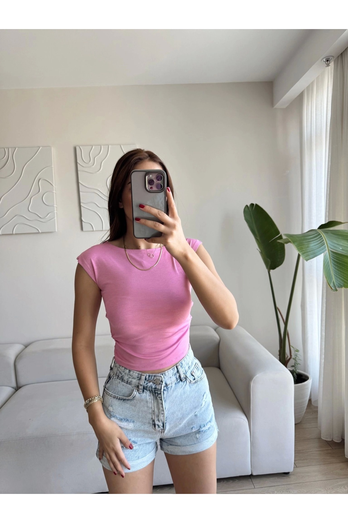 Yan Lastik Kayık Yaka Crop - PEMBE Yan Lastik Kayık Yaka Crop - PEMBE P17566S6005 L