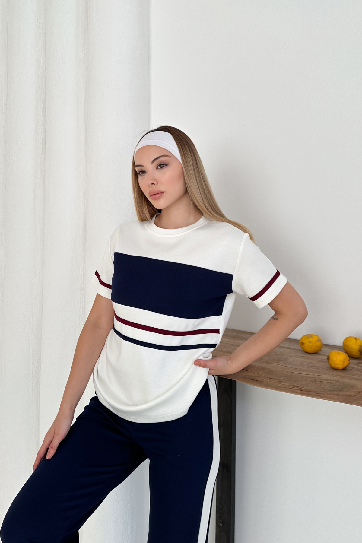 Kadın Lacivert Şeritli Modal Kumaş Kısa Kolu Eşofman Takımı Kadın Lacivert Şeritli Modal Kumaş Kısa Kolu Eşofman Takımı 2000 XL
