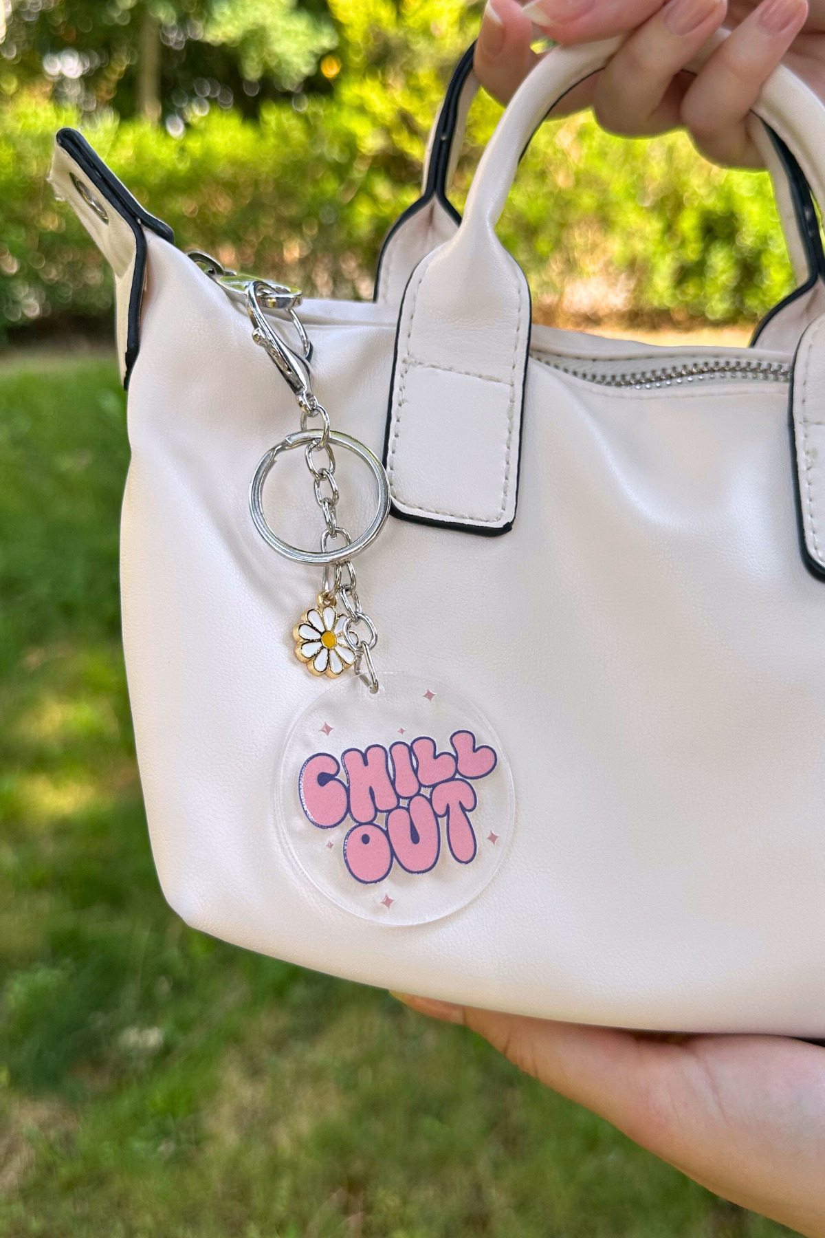 Chill Out Tasarımlı Papatya Charmlı Anahtarlık ve Çanta Süsü Aksesuar Chill Out Tasarımlı Papatya Charmlı Anahtarlık ve Çanta Süsü Aksesuar 25AH107 تک سایز