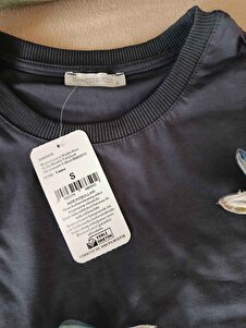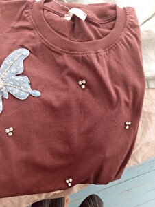 Kadın Kelebek Aksesuarlı Taş İşlemeli Kısa Kollu T-Shirt 60602036 Kadın Kelebek Aksesuarlı Taş İşlemeli Kısa Kollu T-Shirt 60602036 L