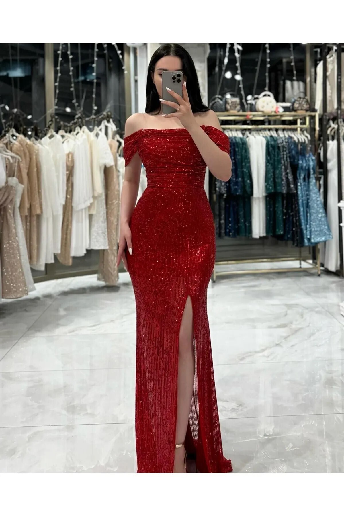 Zümrüt Kayık Yaka Taşlı Abiye Elbise Zümrüt Kayık Yaka Taşlı Abiye Elbise ST5520-6117 46