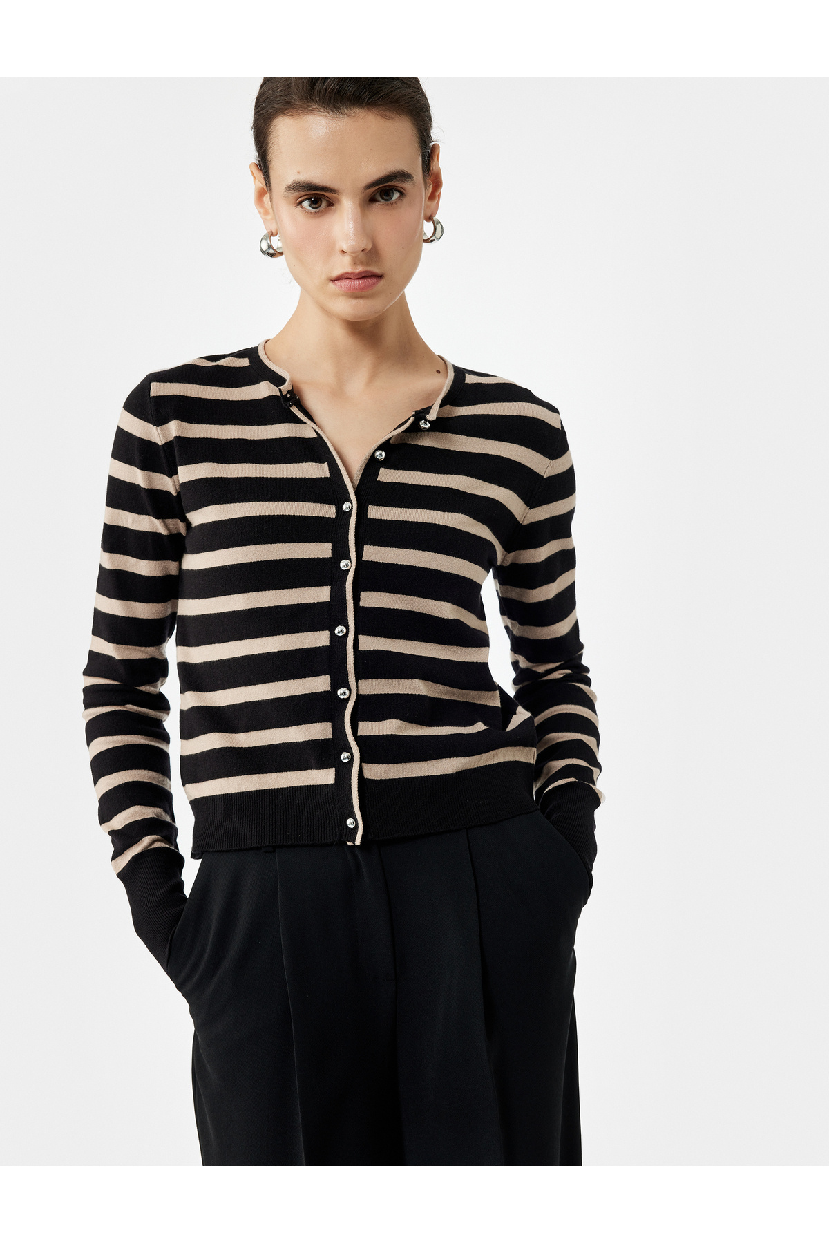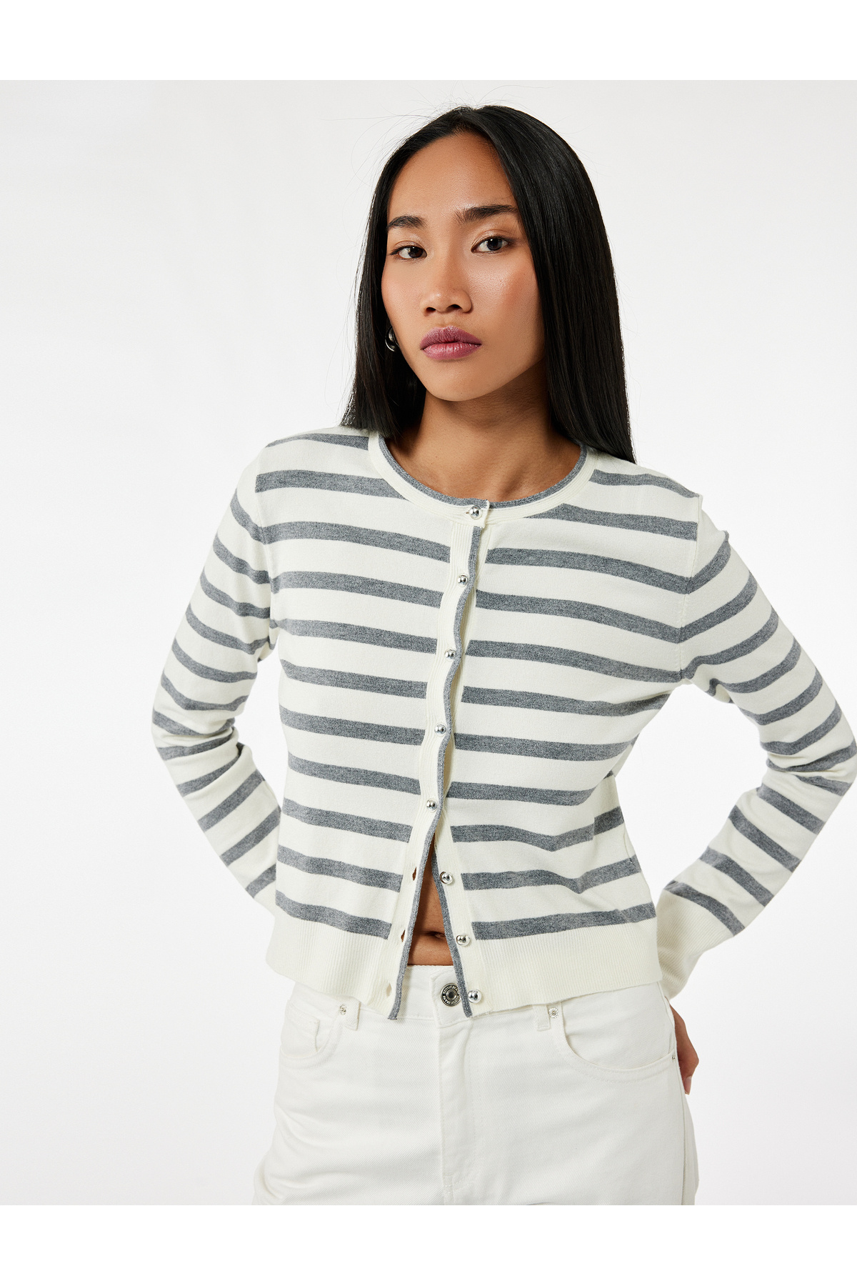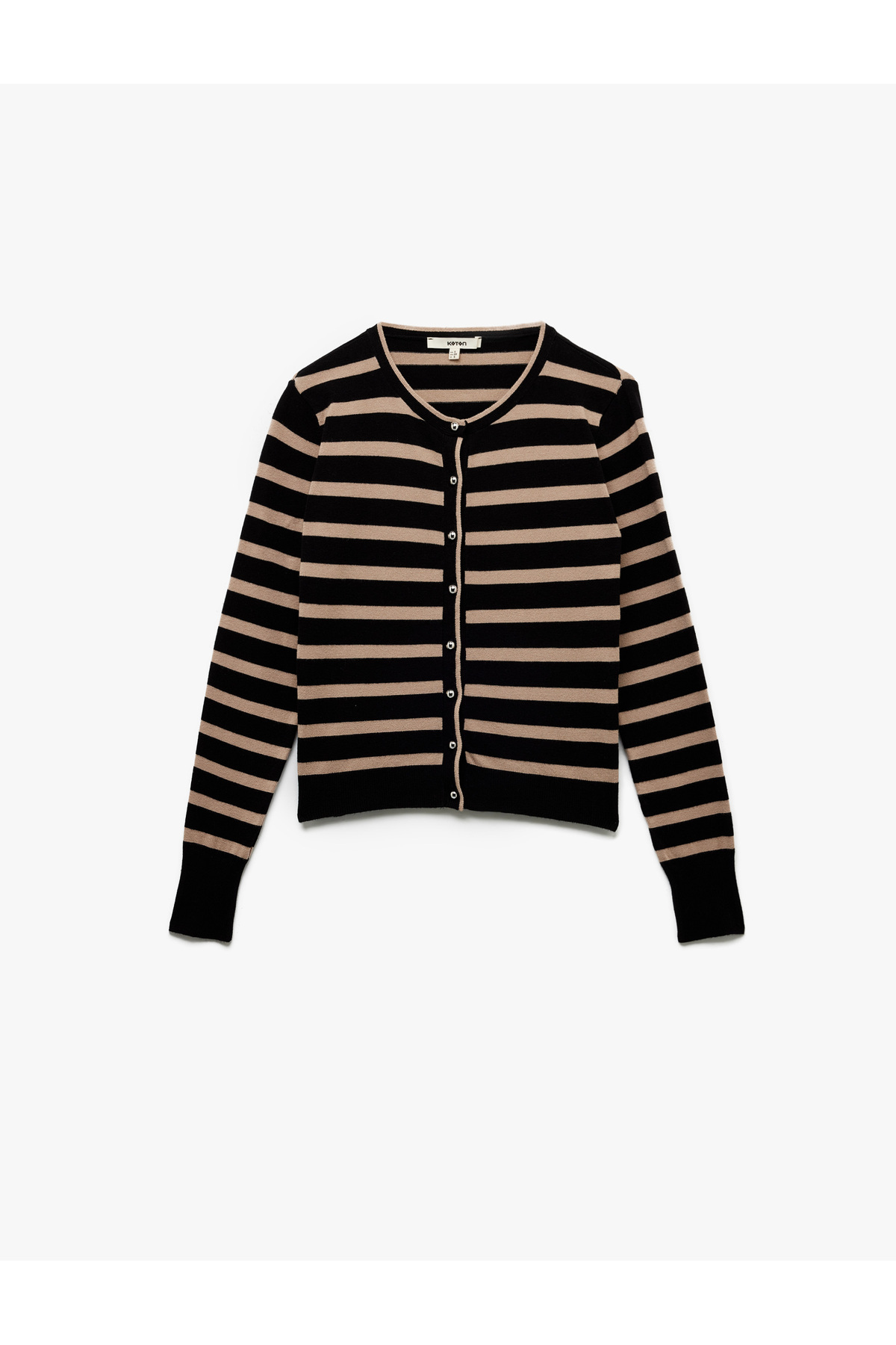 Uzun Kollu Bisiklet Yaka Çizgili Triko Hırka Uzun Kollu Bisiklet Yaka Çizgili Triko Hırka 6WAK90046HT XL