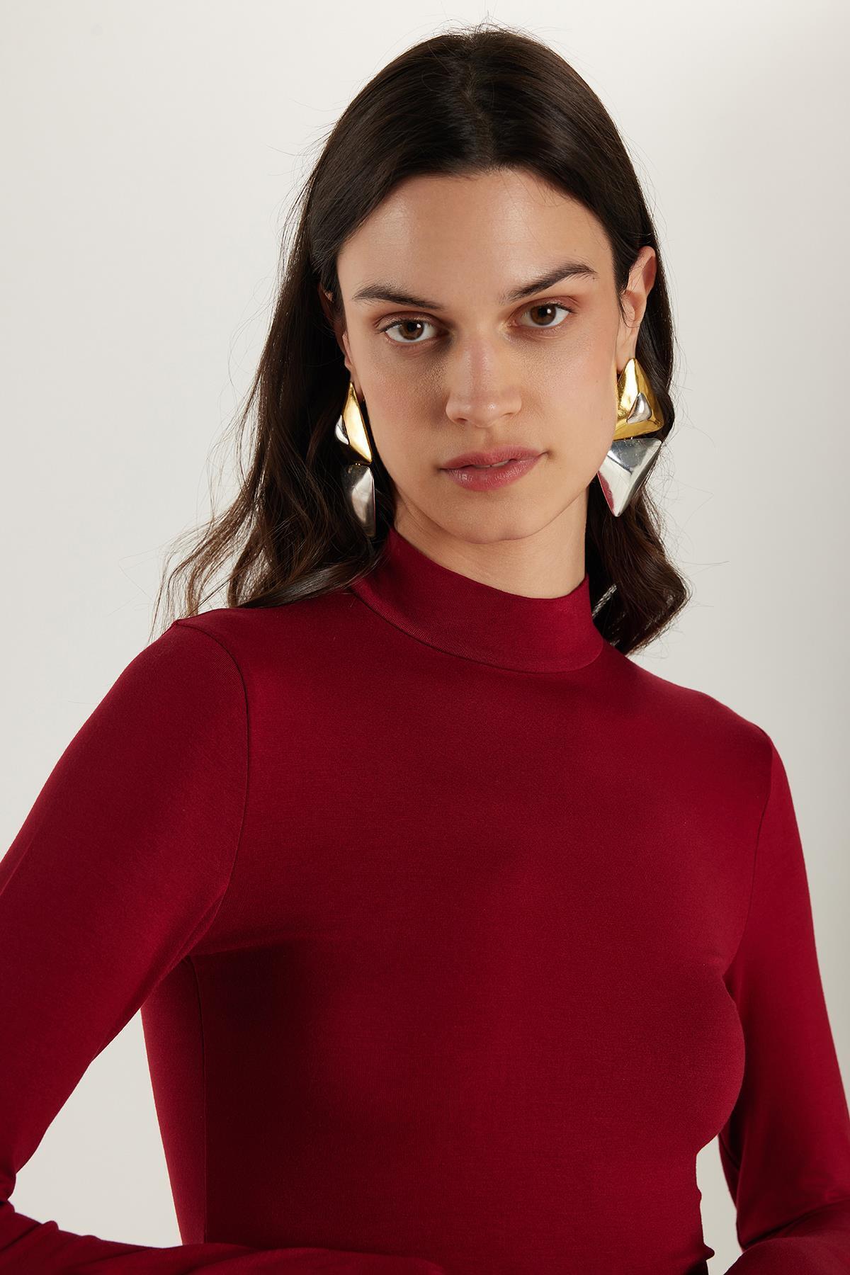 Kadın Regular Fit Klasik Kesim Viskon Kumaş Balıkçı Yaka Bordo Bluz Kadın Regular Fit Klasik Kesim Viskon Kumaş Balıkçı Yaka Bordo Bluz BDY25022 2XL