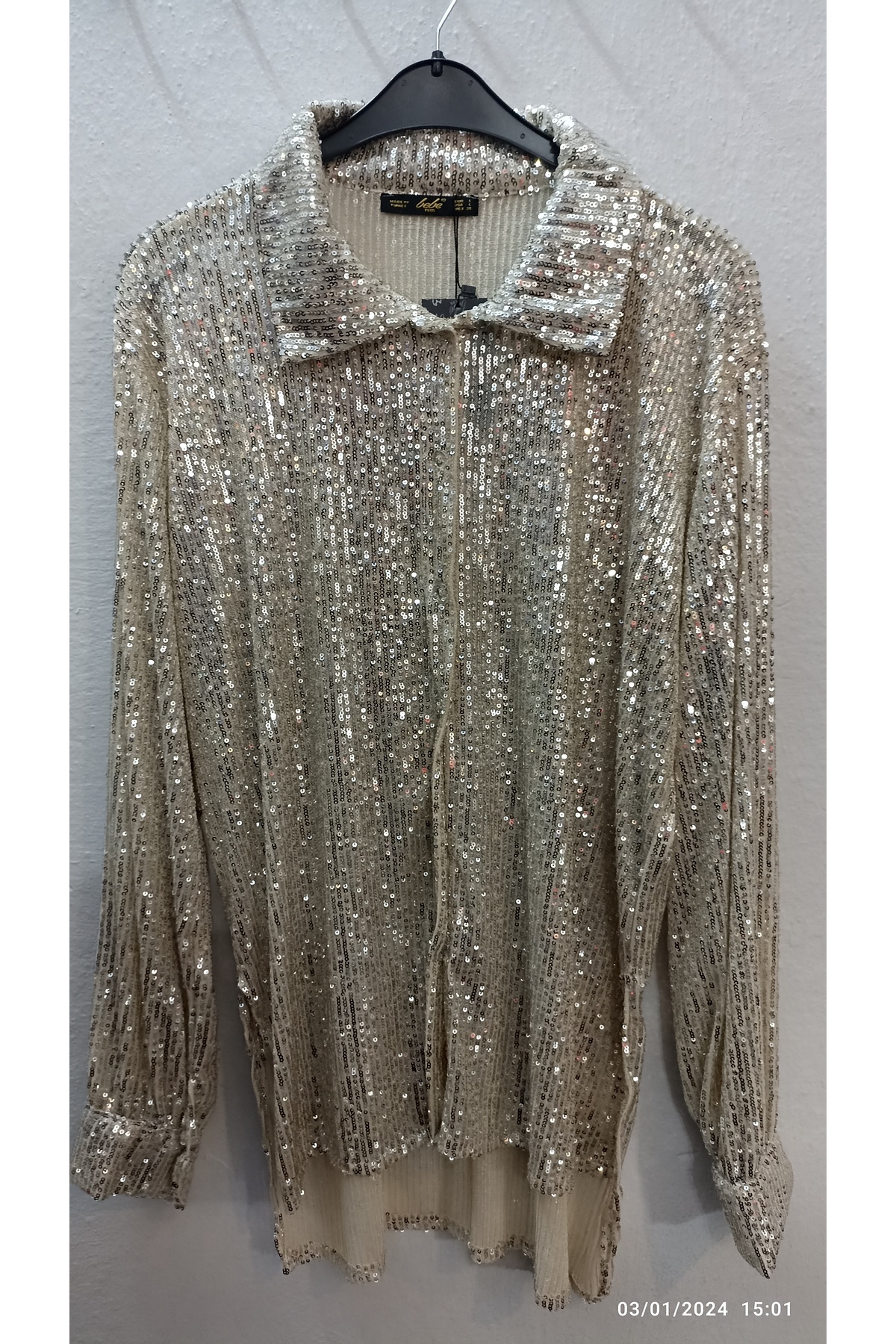 Pul Payet Detaylı Şık Siyah Gömlek Pul Payet Detaylı Şık Siyah Gömlek 2535 XL