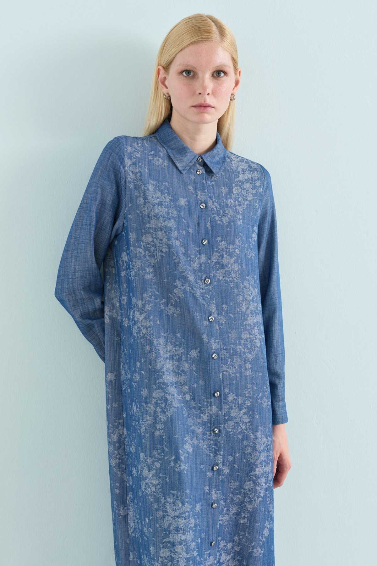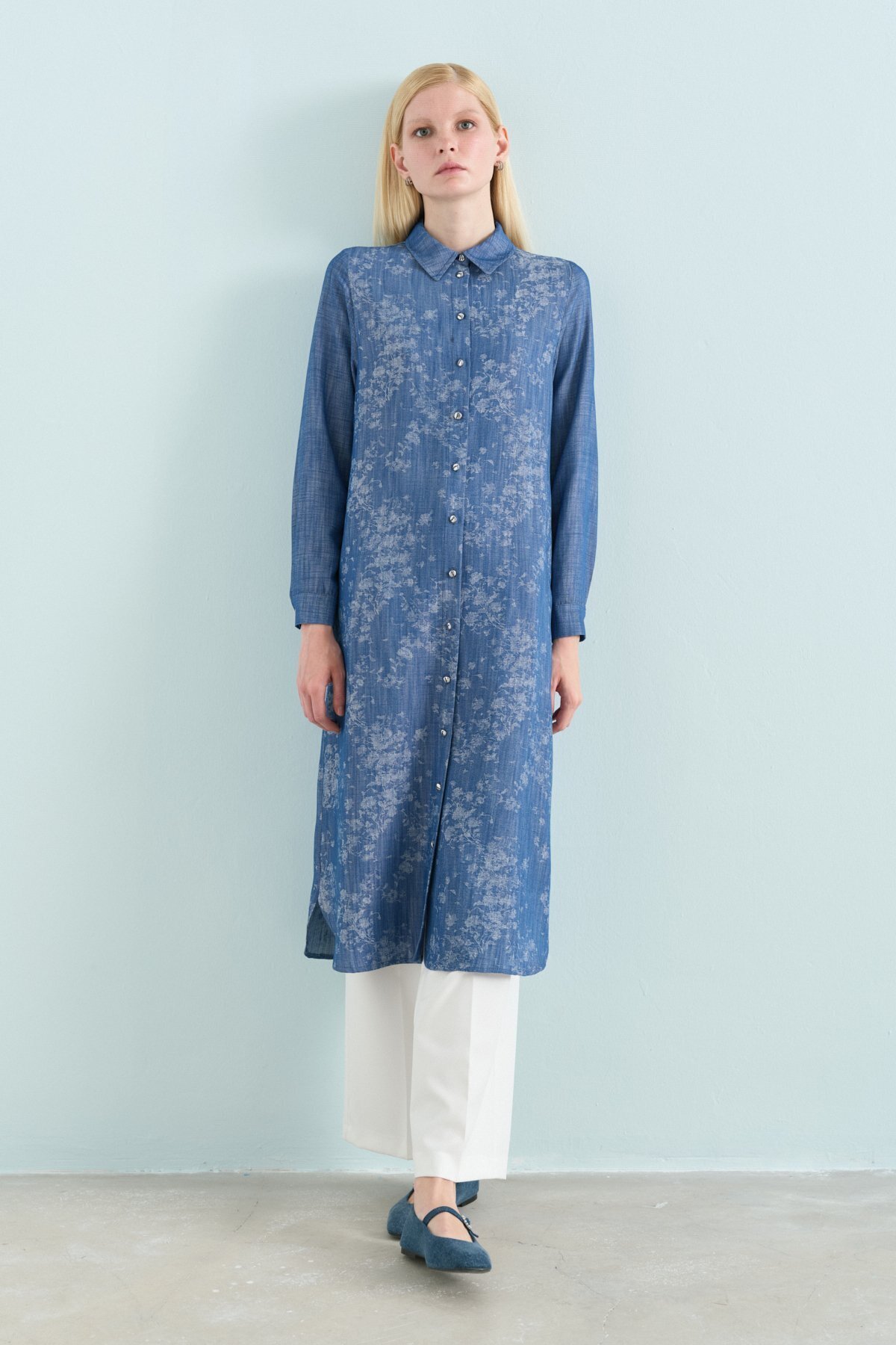 Gömlek Yaka Uzun Viskon Tunik İndigo Gömlek Yaka Uzun Viskon Tunik İndigo 251TN6127NH.1 42