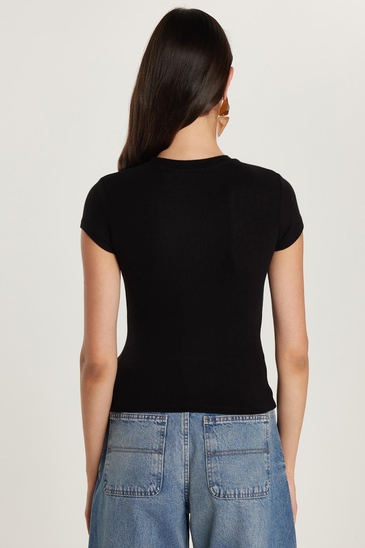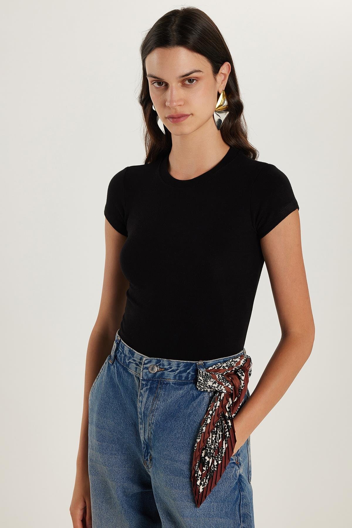 Kadın Regular Fit Klasik Kesim Bisiklet Yaka Viskon Kumaş Ultra Soft Siyah Tişört Kadın Regular Fit Klasik Kesim Bisiklet Yaka Viskon Kumaş Ultra Soft Siyah Tişört BDY25023 L