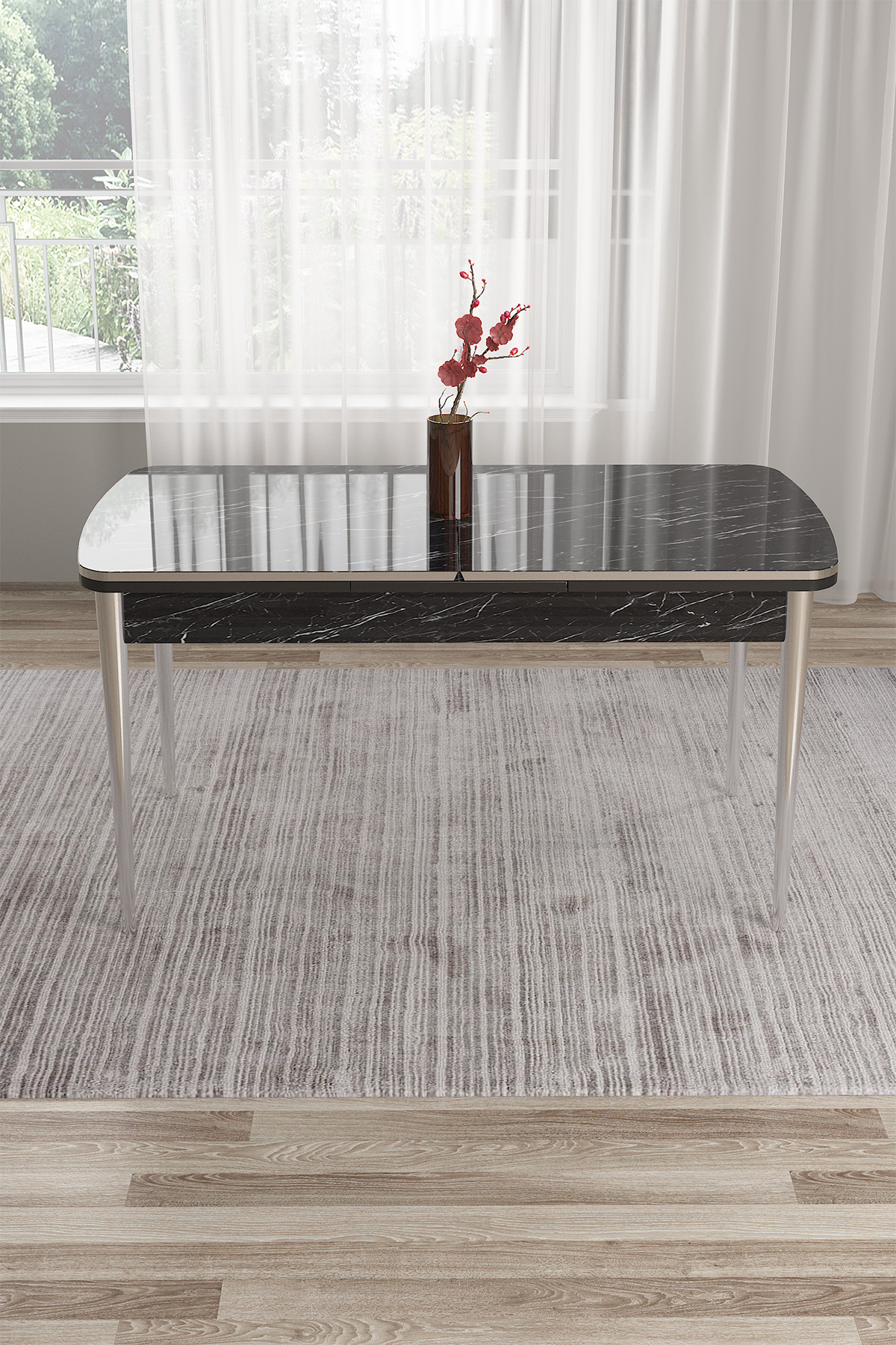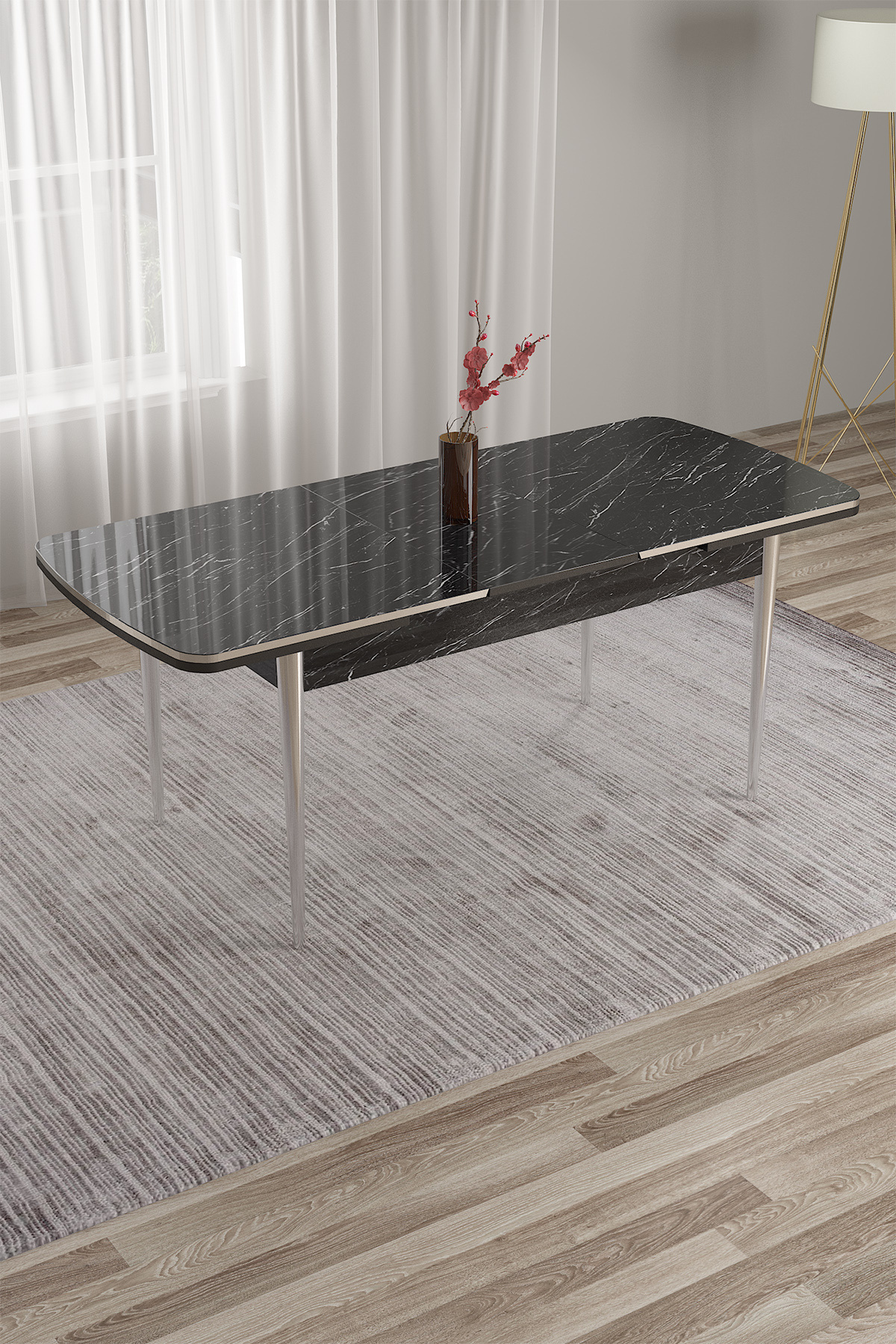Nira Serisi 70x114 Mdf Siyah Mermer Desen Mutfak Masa Takımı 6 Antrasit Sandalye Krom Detay Nira Serisi 70x114 Mdf Siyah Mermer Desen Mutfak Masa Takımı 6 Antrasit Sandalye Krom Detay NİRA06SYHMR06KRM تک سایز