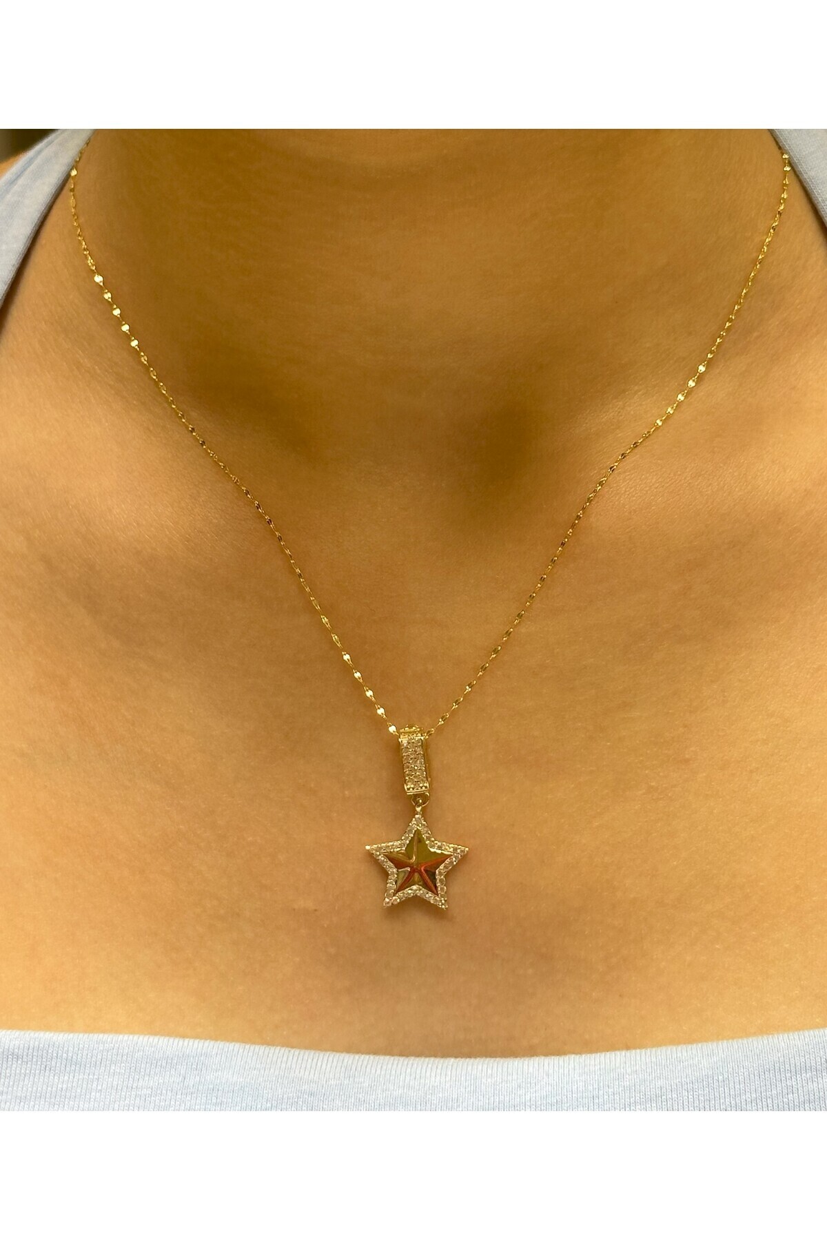 Yıldız Uçlu Taşlı Altın Kolye Yıldız Uçlu Taşlı Altın Kolye CRHYLDZ3 55 cm