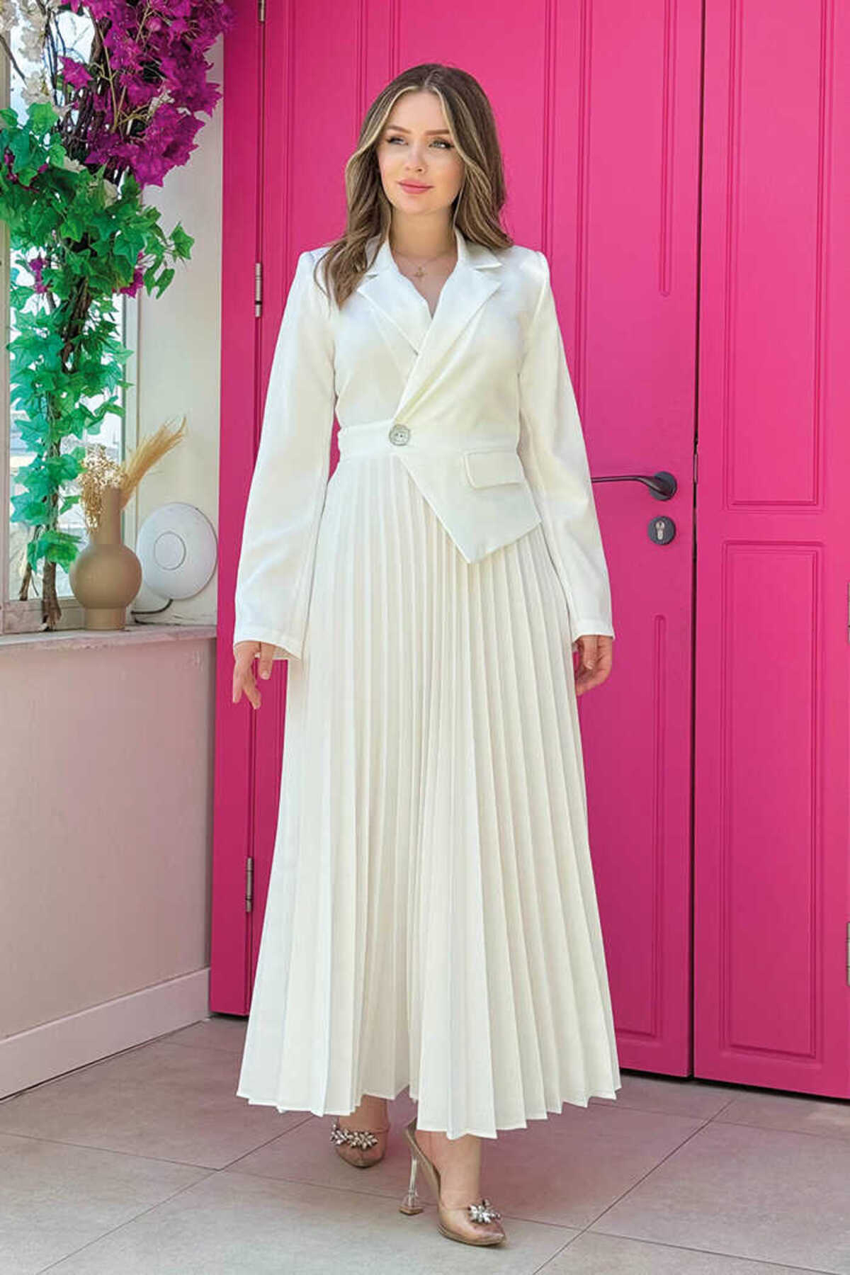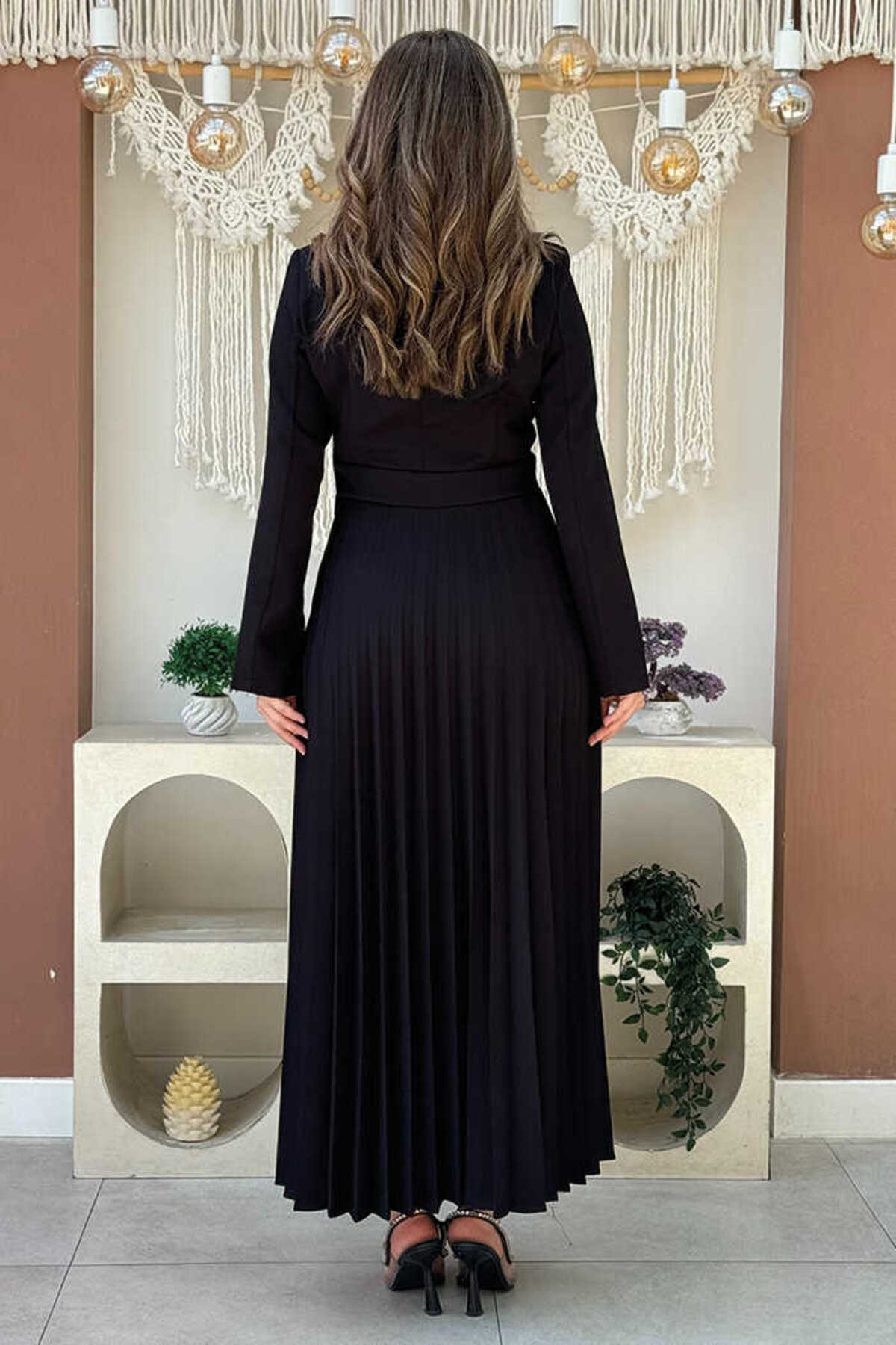 Ceket Görünümlü Eteği Piliseli Elbise 3700 Siyah Ceket Görünümlü Eteği Piliseli Elbise 3700 Siyah 826 48
